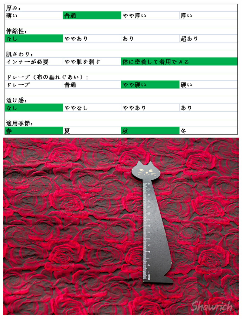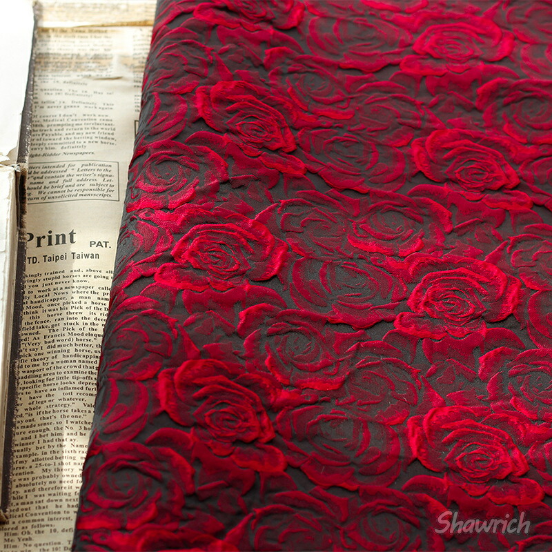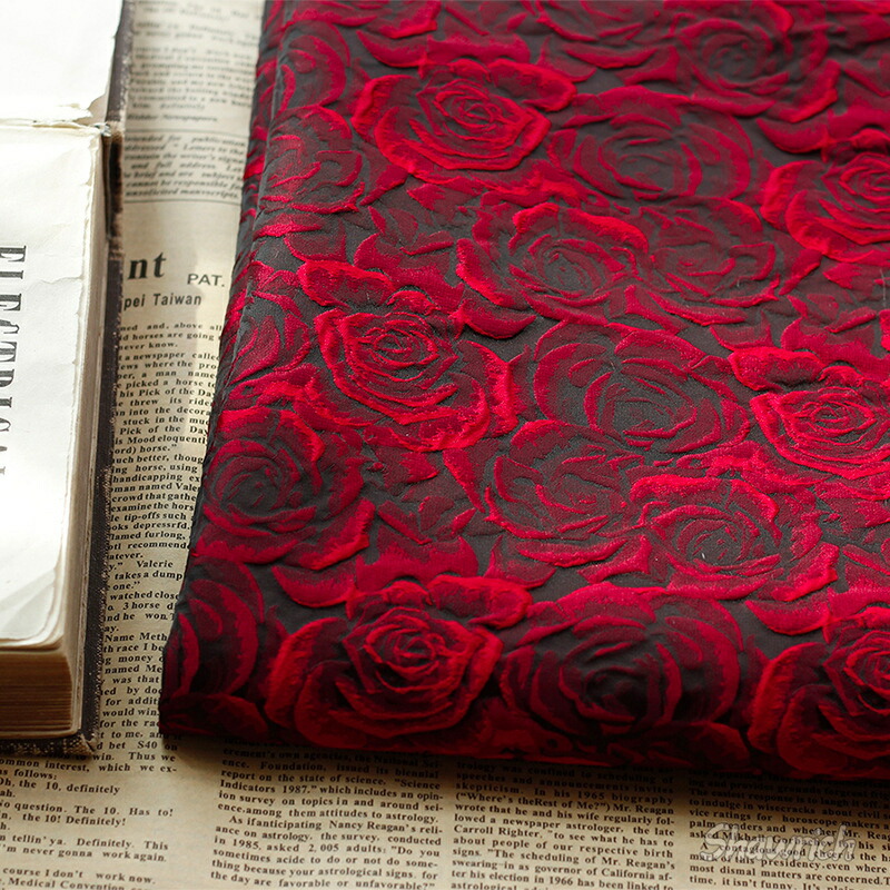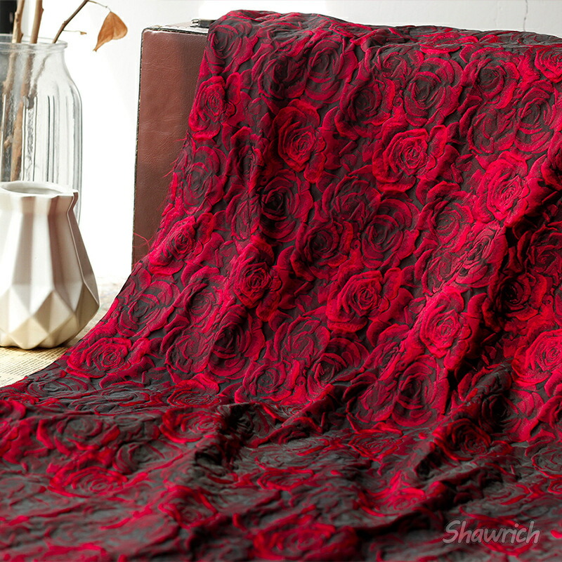 160cm幅 90cm単位 生地 花柄 布 ジャカード エンボス 布地 バラ 立体花 レッド ブラック ローズ