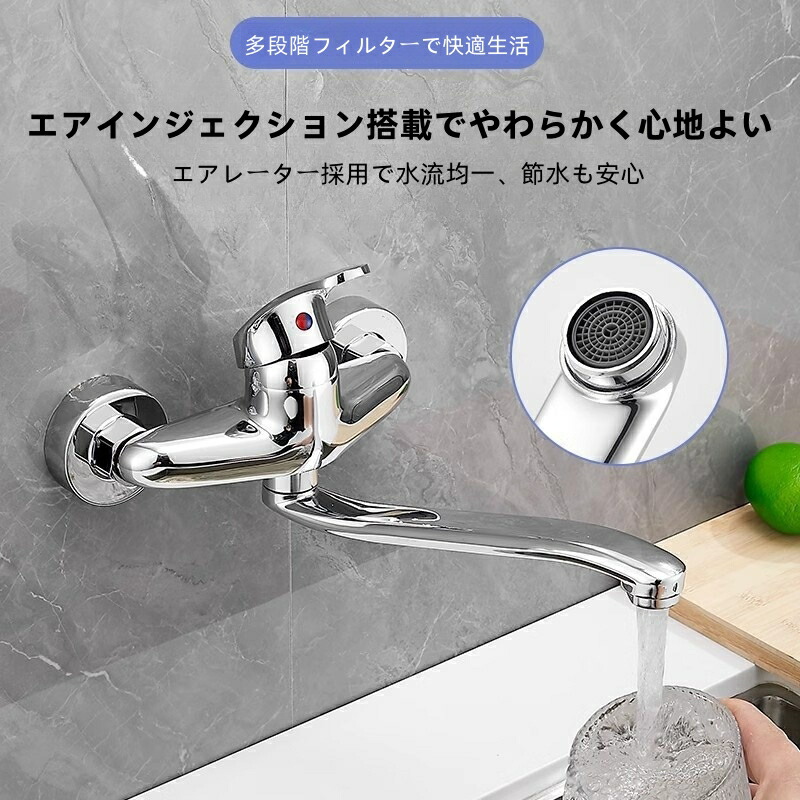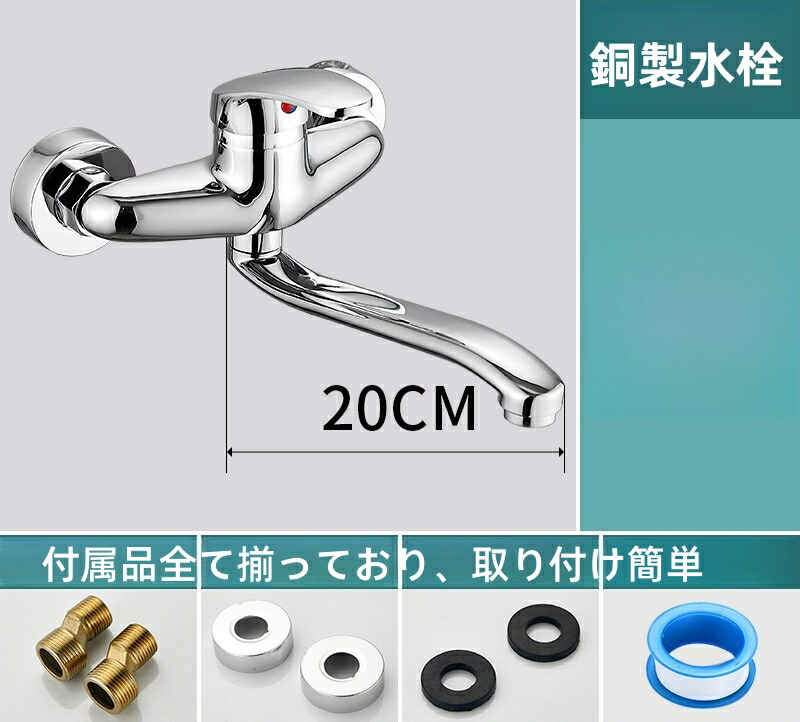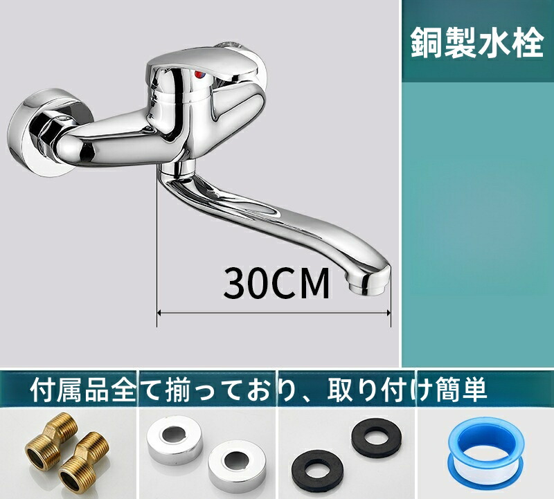 キッチン蛇口 壁付き 混合水栓 シング 合金 銅製 20cm 合金(25cm)/銅製(24cm) 30cm