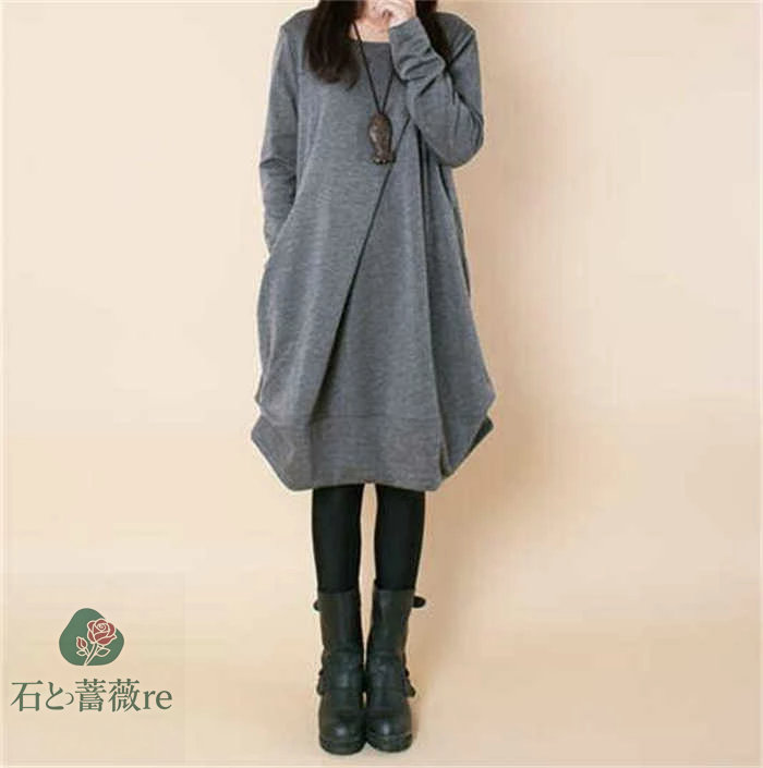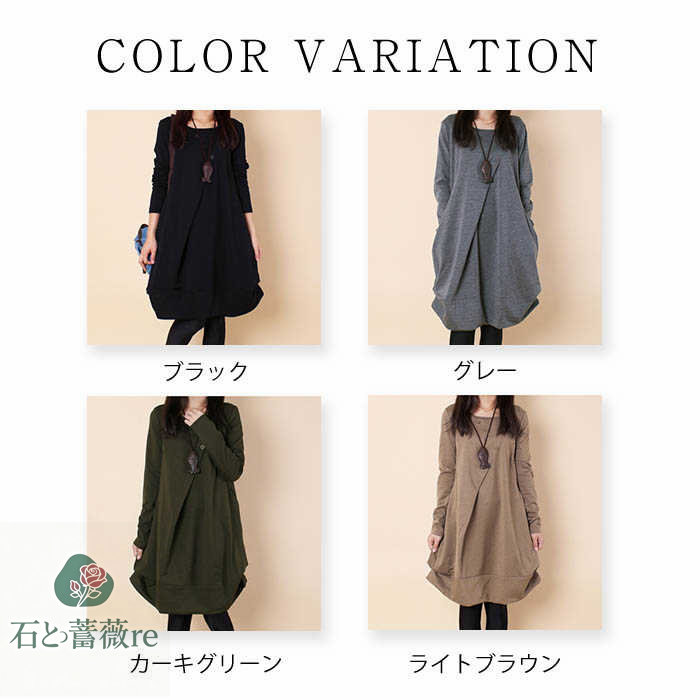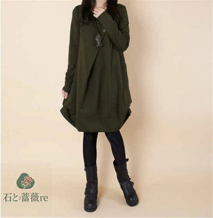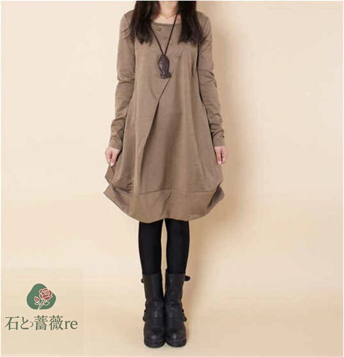 ワンピース 綿 レディース チュニック レディースファッション 超目玉商品 ブラック グレー カーキグリーン ライトブラウン M L XL 2XL