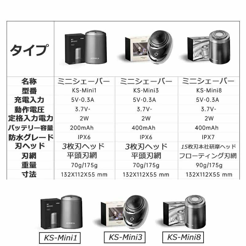 KONKA 超小型 電動 ミニシェーバ ブラック パープル ブルー シルバー KS-Mini1 KS-Mini3 KS-Mini8