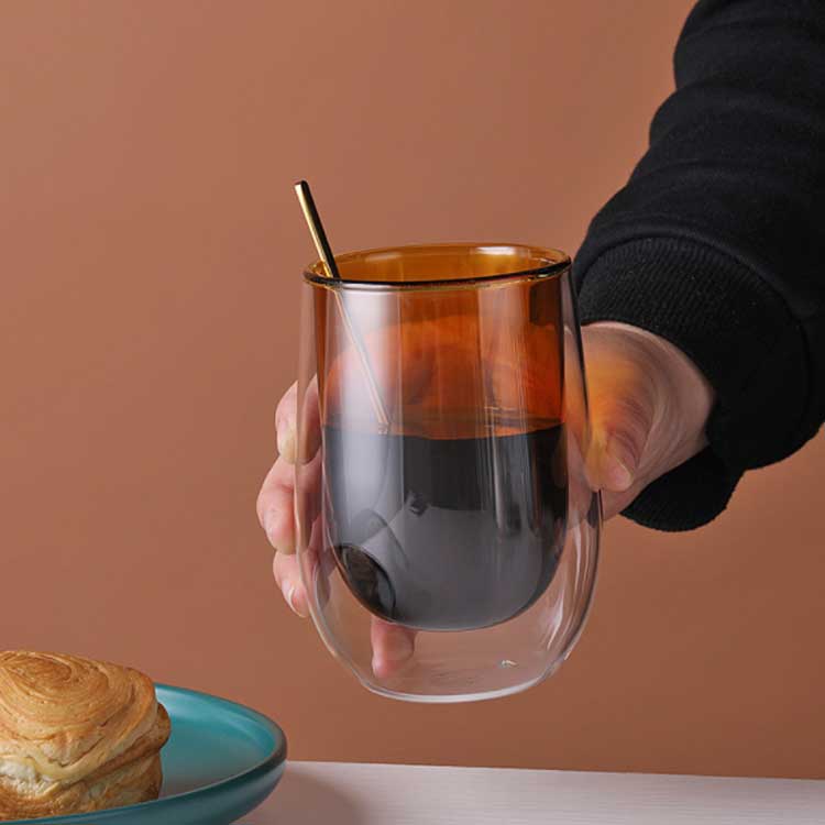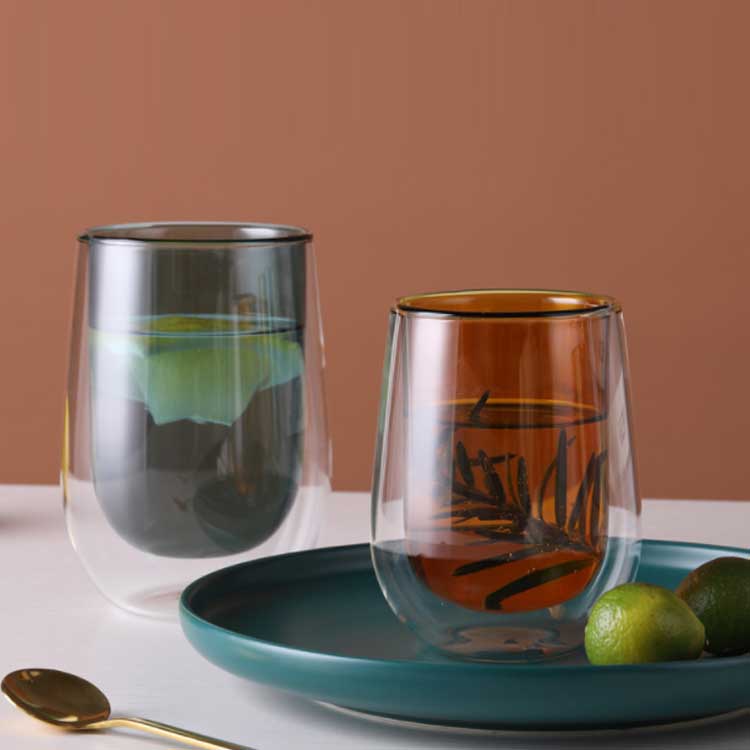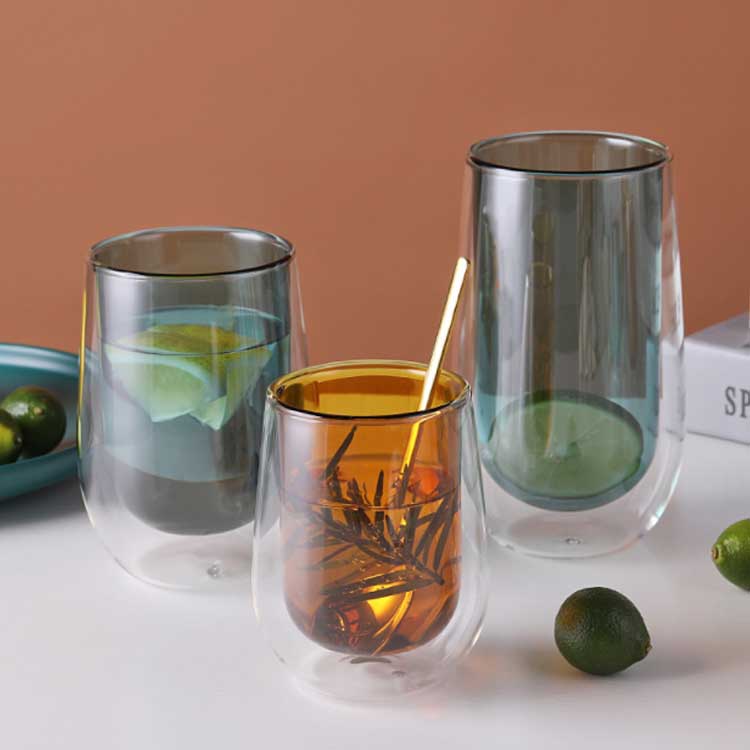 ダブルウォールグラス 2個セット 20 食器 カトラリー グラス キッズ用食器 マグカップ コップ 豊富な品揃え クリア2個 青色2個 琥珀2個 200ml 300ml 400ml