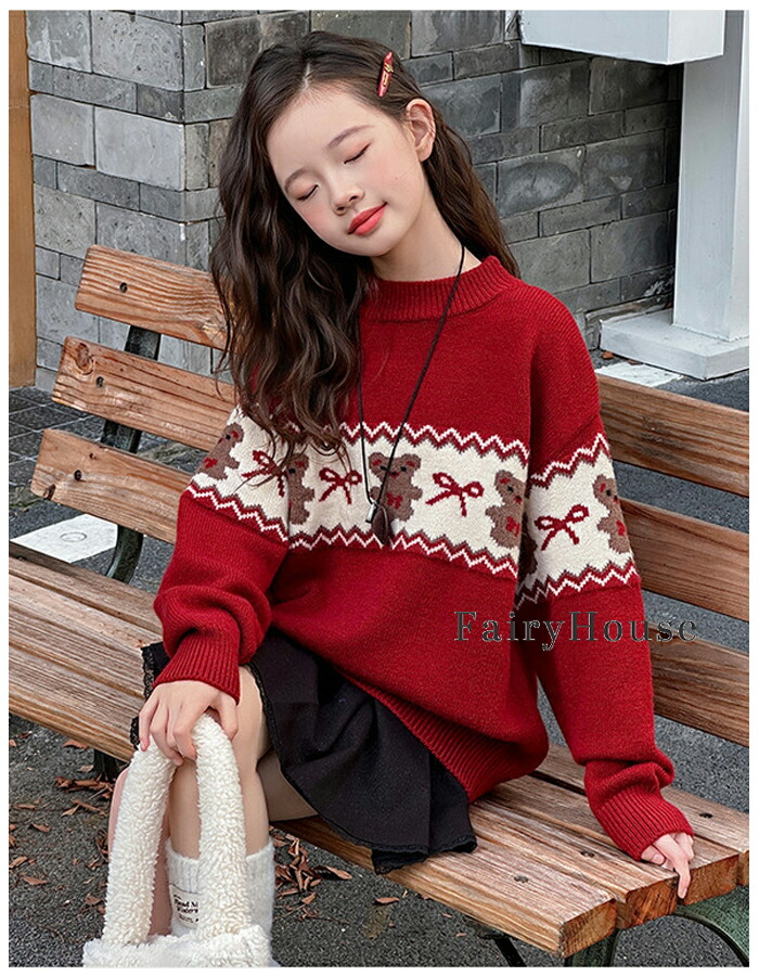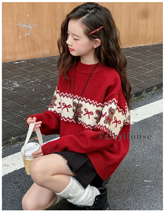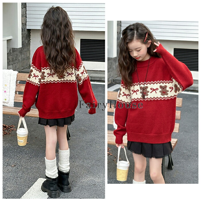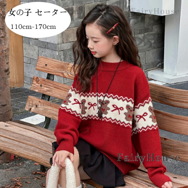 子供服 女の子 セーター レッド かわ キッズ トップス セーター 続々登場 110 120 130 140 150 160 170