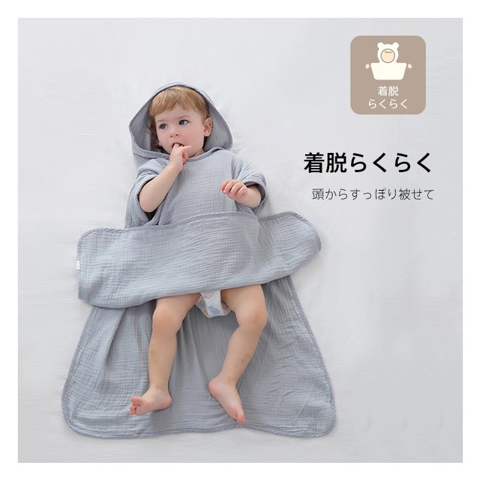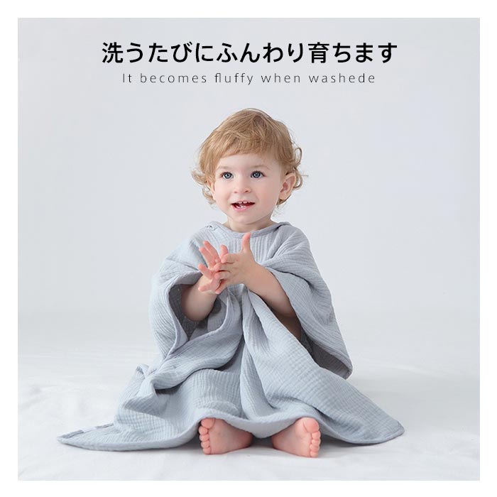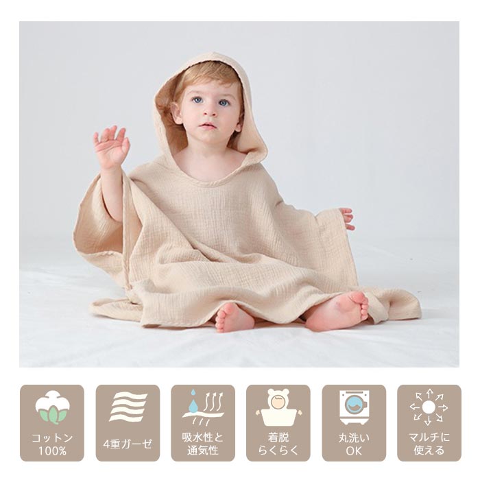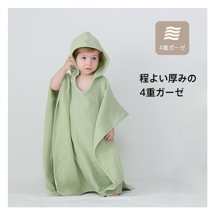 コットン キッズバスローブ 着るバスタオル バスポンチョ キッズ バスタオル フード付き 4重ガーゼ 綿100% ベビー
