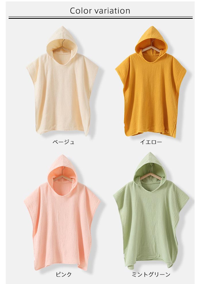 コットン キッズバスローブ 着るバスタ キッズ ベビー マタニティ 豊富な品揃え ベージュ グレー イエロー ピンク グリーン ブラウン ミントグリーン