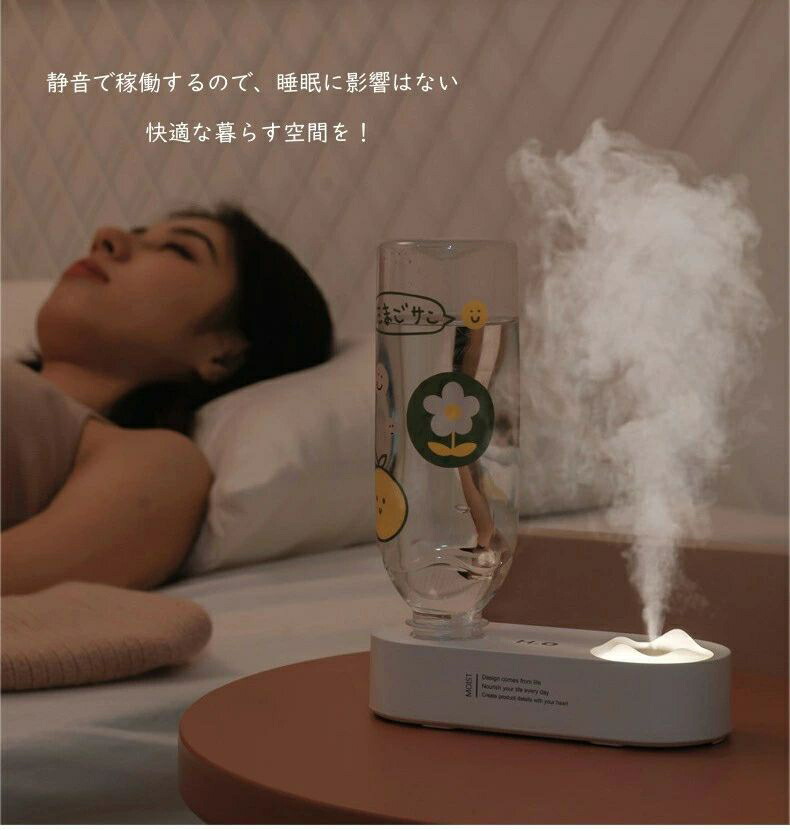 加湿器 卓上 ペットボトル 省エネ 簡単お手入れ コンパクト かわいい スチーム ペットボトル用 ポータブル加湿器 持ち運び ライト付き 携帯用 寝室用 超音波 車載 家庭 オフィス 28mm対 寝室
