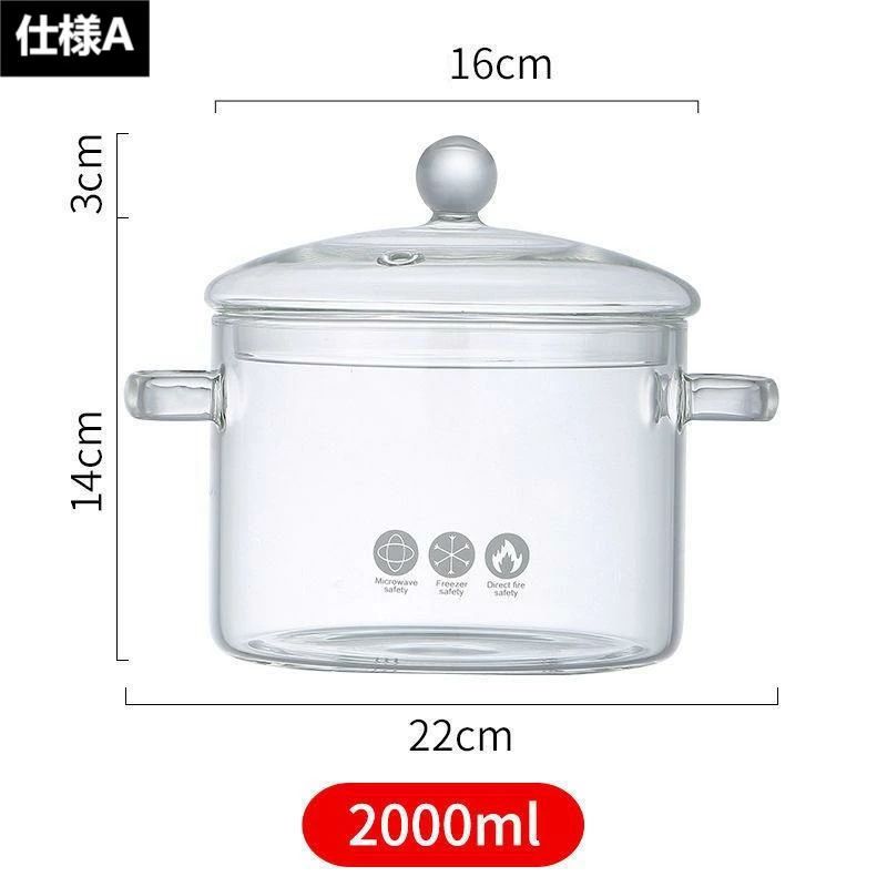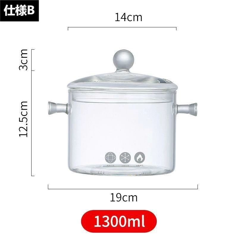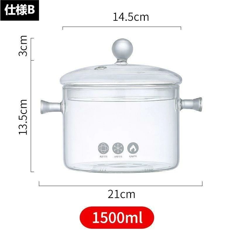 ガラス調理鍋 スープ鍋 耐熱ガラス鍋 キッチン用品 食器 調理器具 特集 仕様A 仕様B 1300mL 1500mL 2000mL