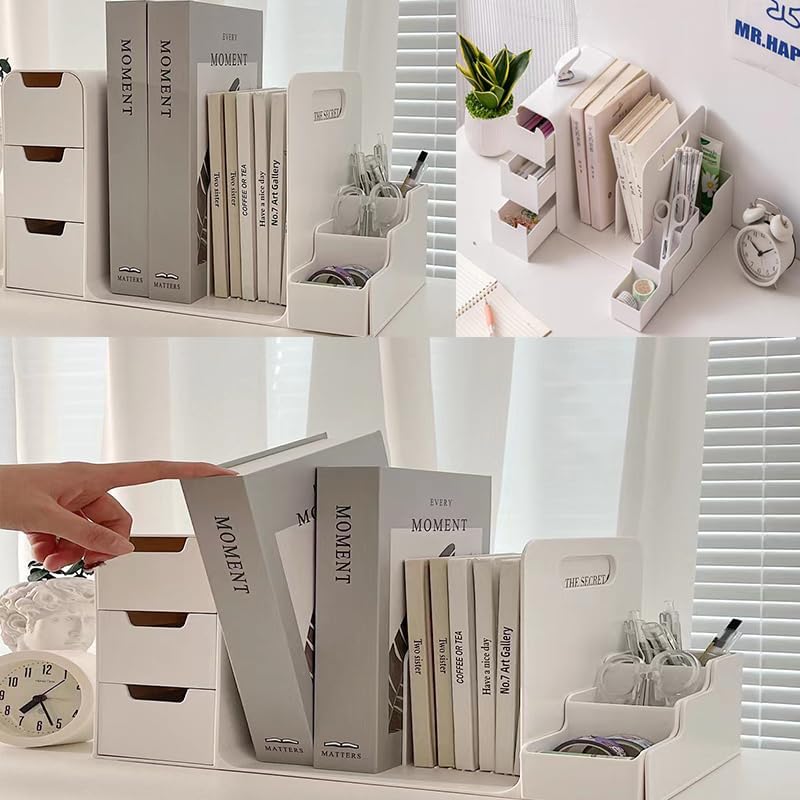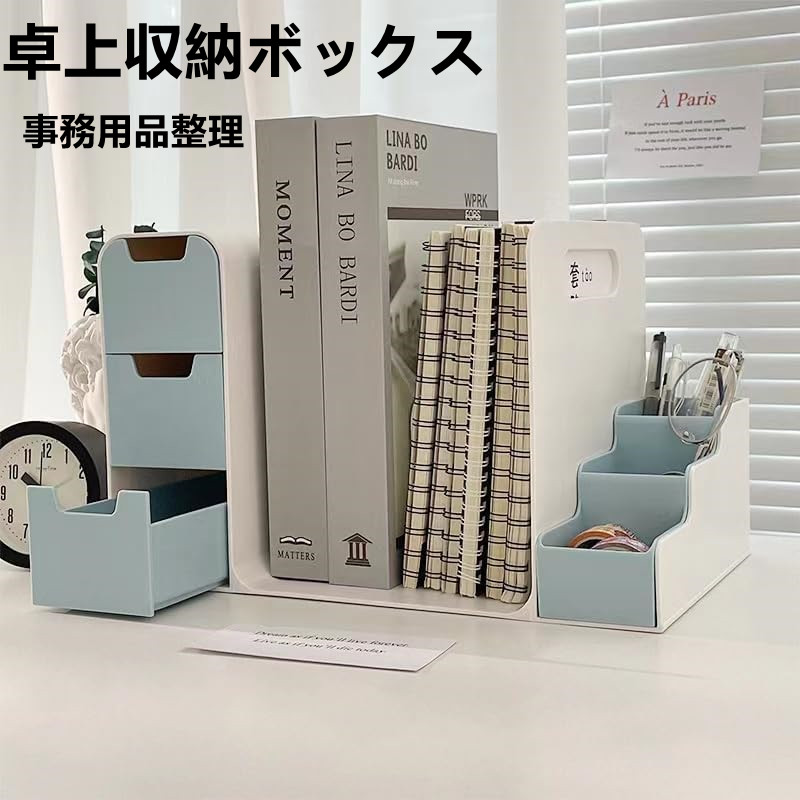 卓上収納ボックス ブックエンド 机上ラ ブルー ホワイト ピンク
