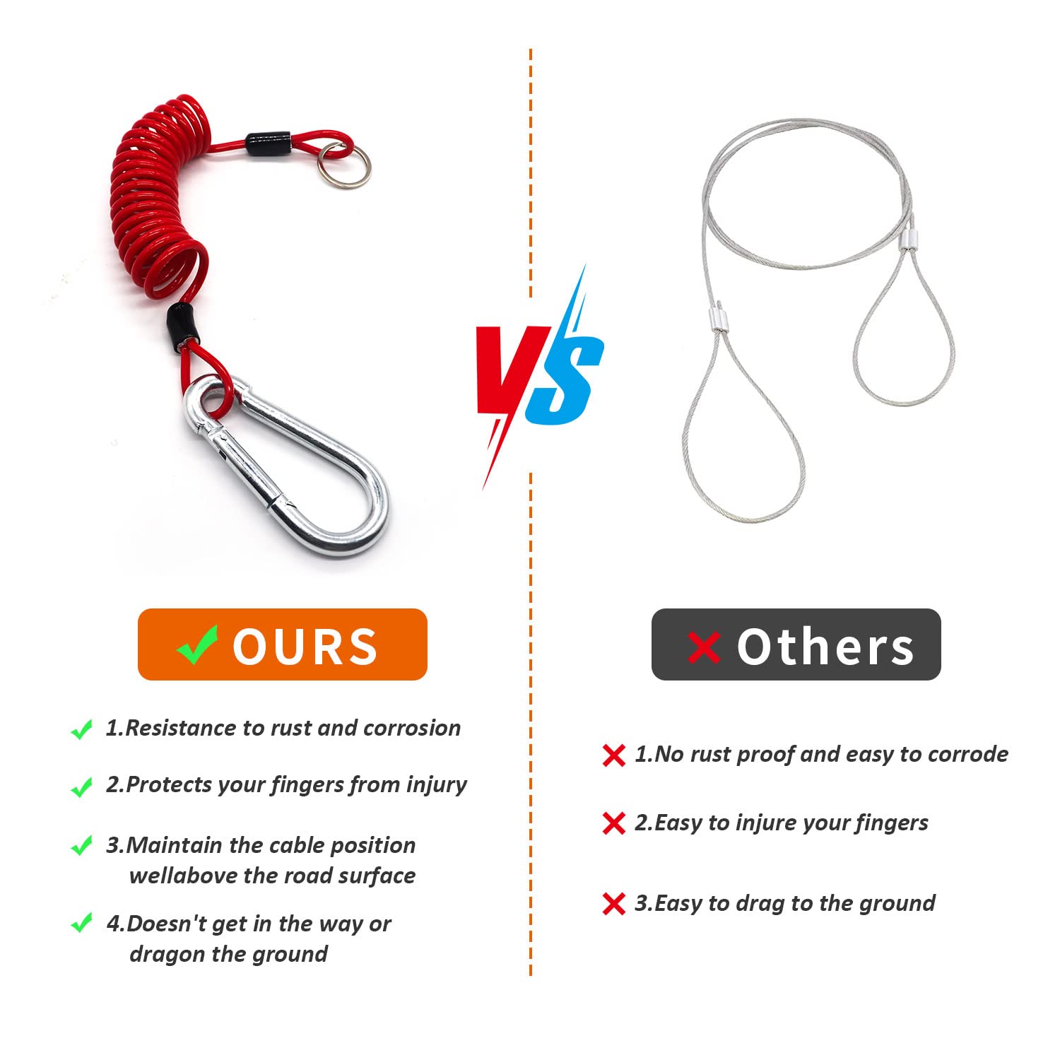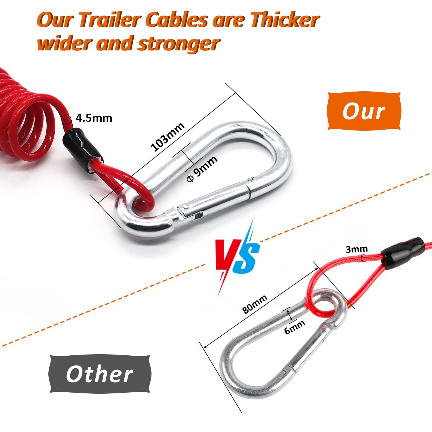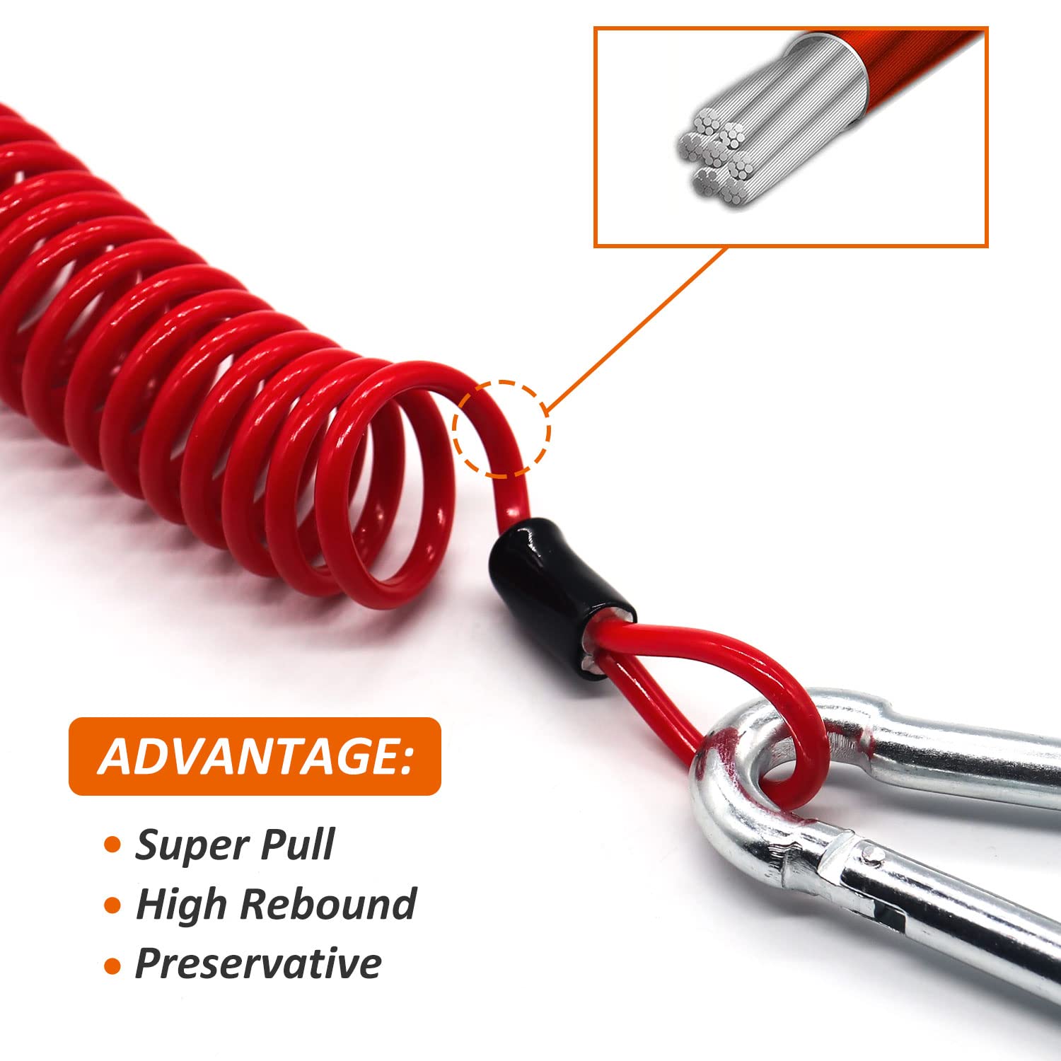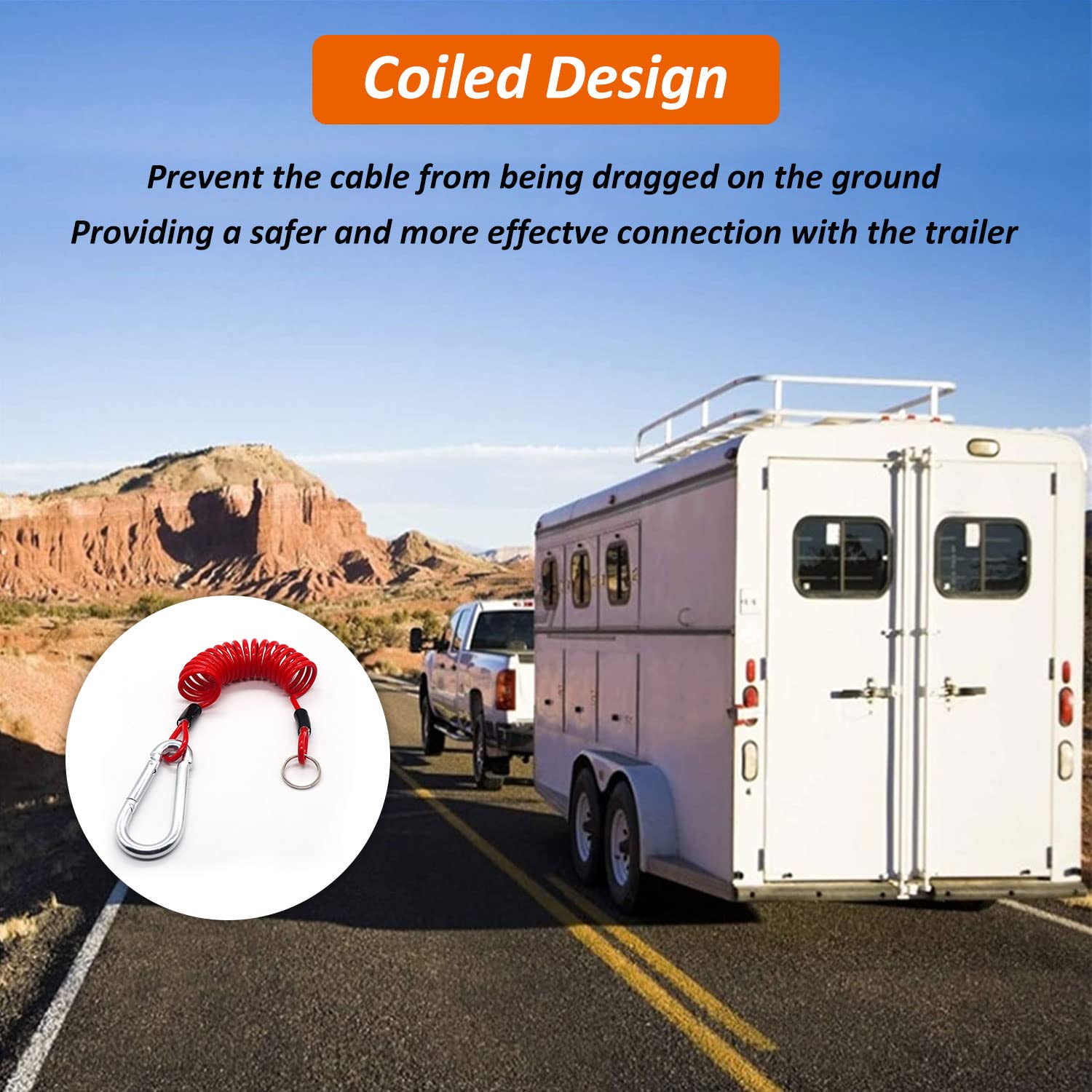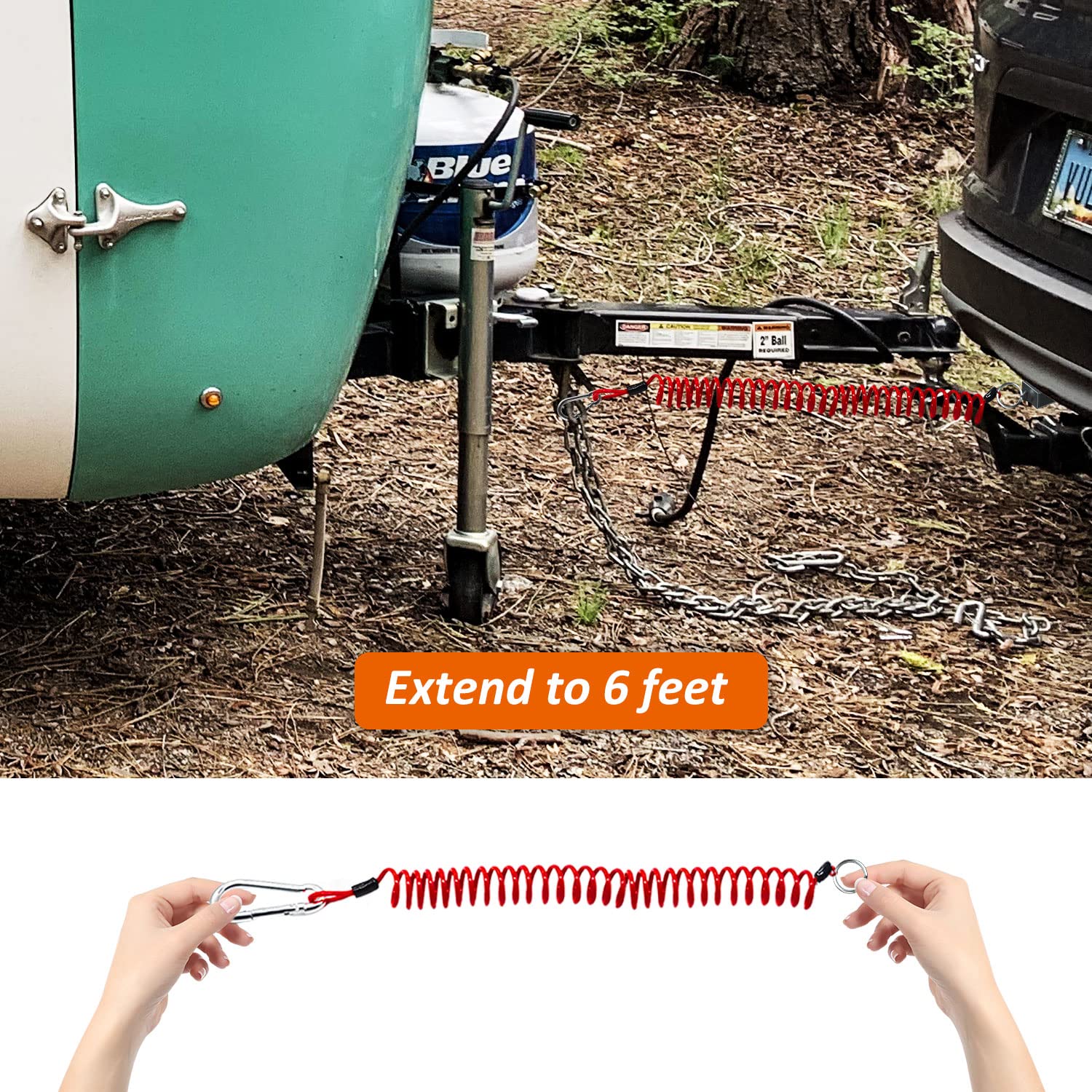 トレーラーケーブル - 6フィート トレーラーブレークアウェイケーブル ステンレススチールスプリング牽引コイルワイヤー 安全ケーブルストラップ 牽引トレーラー用