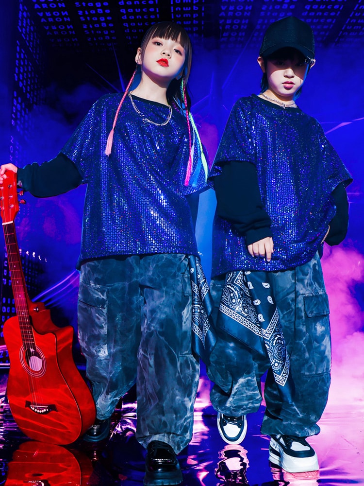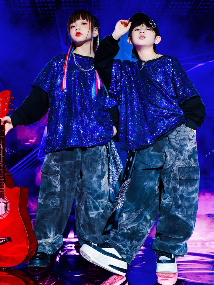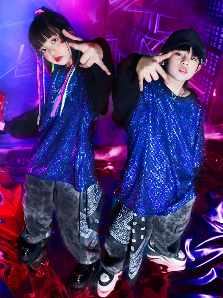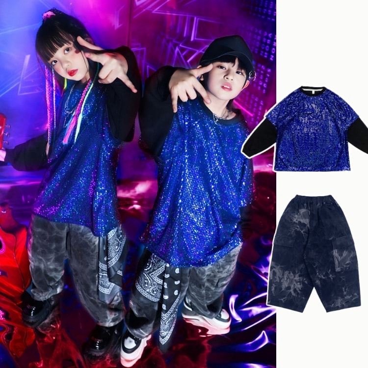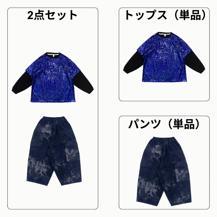 スパンコール 青 キッズダンス衣装 セ キッズ スーツ カジュアルセットアップ カジュアルパンツセット 早い者勝ち 110cm 120cm 130cm 140cm 150cm 160cm 170cm 180cm 2点セット トップス(単品) パンツ(単品)