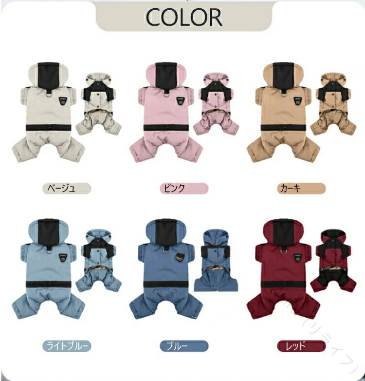 犬服 ジャケット 防寒 4本足 厚手 ペット ペットグッズ 続々登場 ベージュ ピンク カーキ ブルー レッド S M L XL XXL XXXL