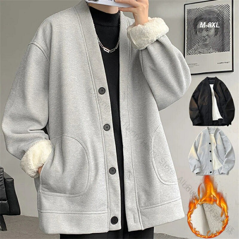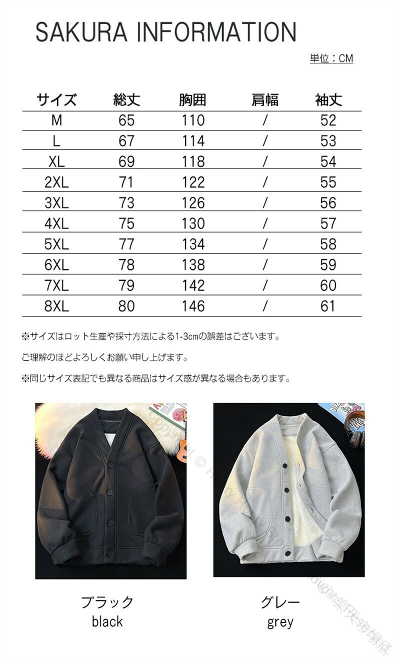 極暖裏ボアカーディガン 男女兼用 ルー メンズファッション 新作 ブラック グレー ブラック裏ボア グレー裏ボア M L XL 2XL 3XL 4XL 5XL 6XL 7XL 8XL