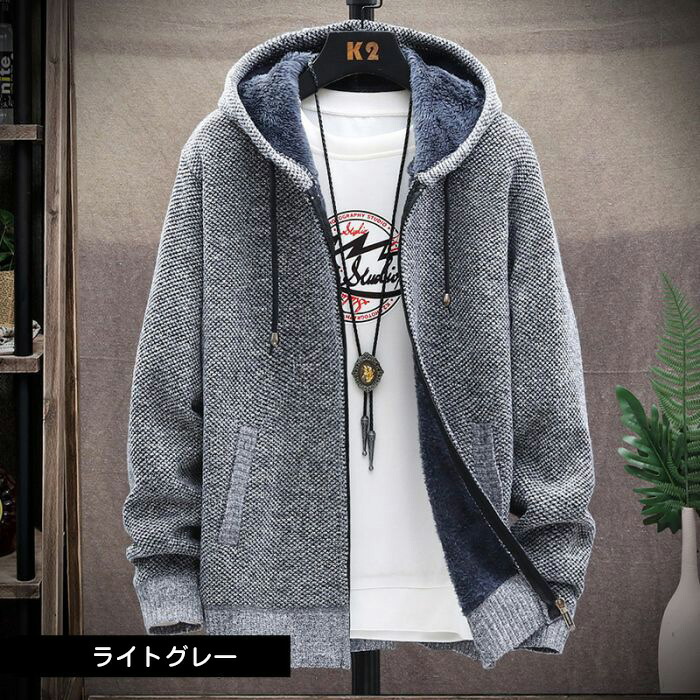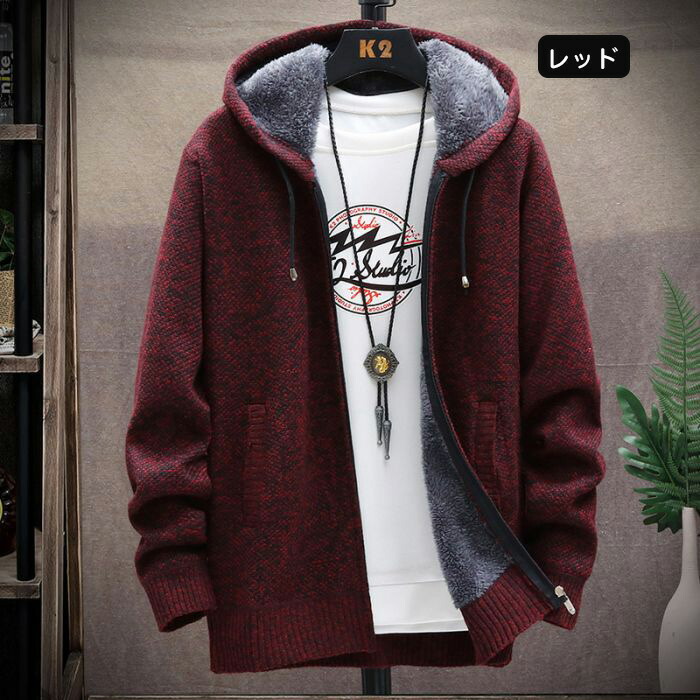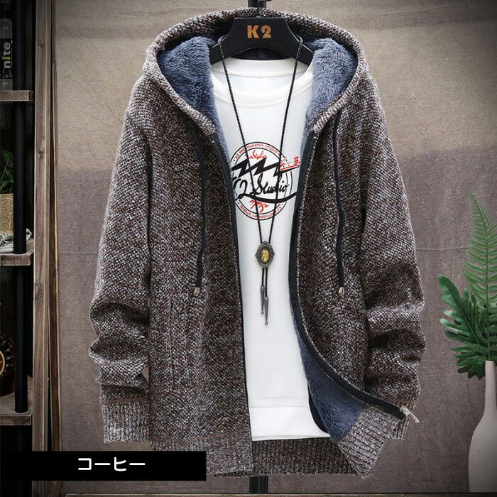 ニットセーター メンズ 裏ボア パーカ メンズファッション 豊富 ブルー ダークグレー ライトグレー レッド コーヒー M L XL 2XL 3XL