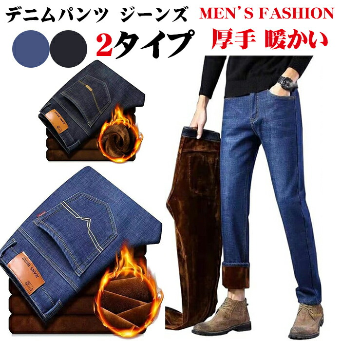 デニムパンツ ジーンズ メンズ 裏起毛 メンズファッション 新登場! ブルー タイプ1 ブラック タイプ1 ブルー タイプ2 ブラック タイプ2 29 30 31 32 33 34 35 36 38 40