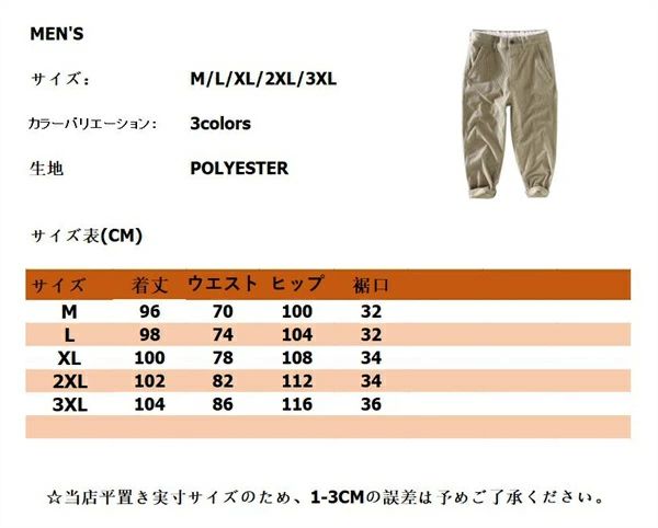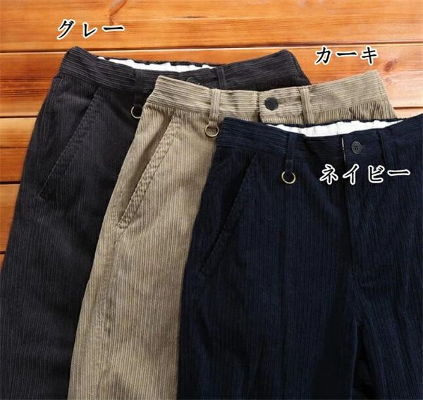 コールテン素材 コールテンパンツ テー メンズファッション 続々登場 カーキ グレー ネイビー M L XL 2XL 3XL