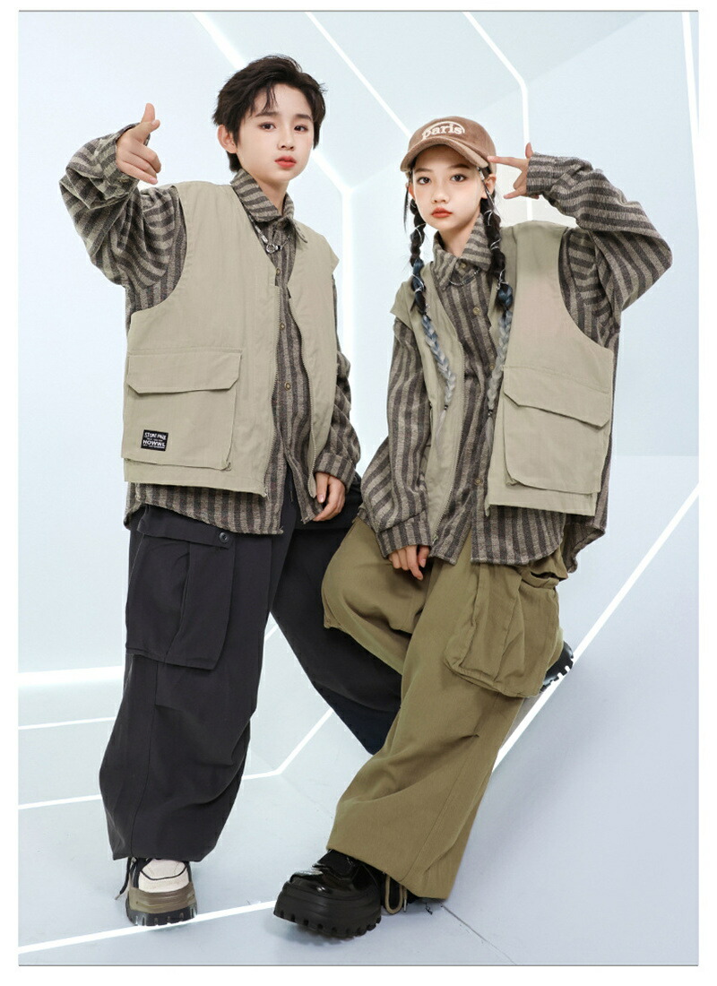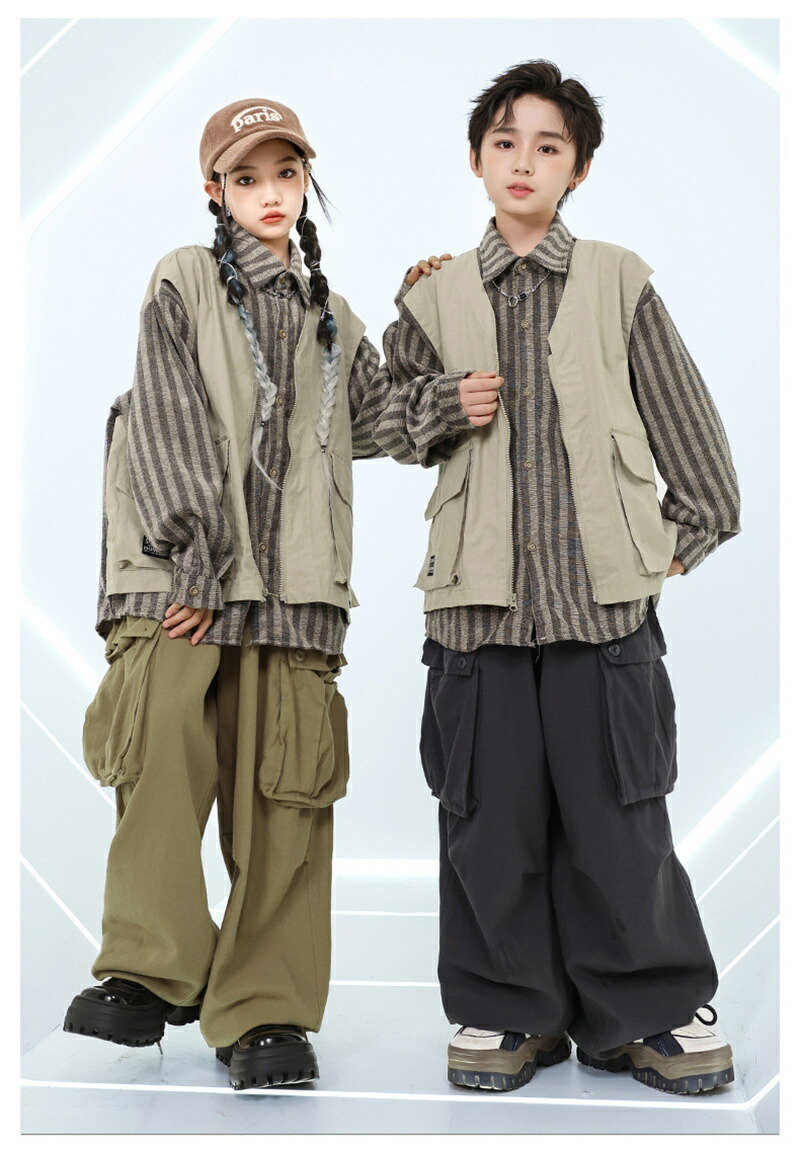 ダンス衣装 キッズ HIPHOP Y2 キッズ スーツ カジュアルセットアップ カジュアルパンツセット 新登場! トップス カーキズボン グレーズボン トップス+カーキズボン トップス+グレーズボン 110cm 120cm 130cm 140cm 150cm 160cm 170cm 180cm