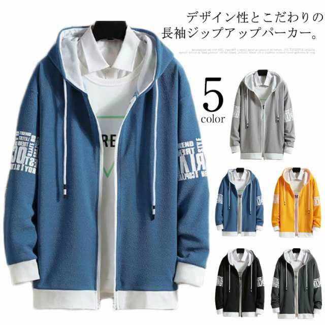 切り替え メンズ 秋服 長袖 フード付 メンズファッション 新登場! イエロー ブラック ブルー ダークグレー ライトグレー S M L XL 2XL 3XL