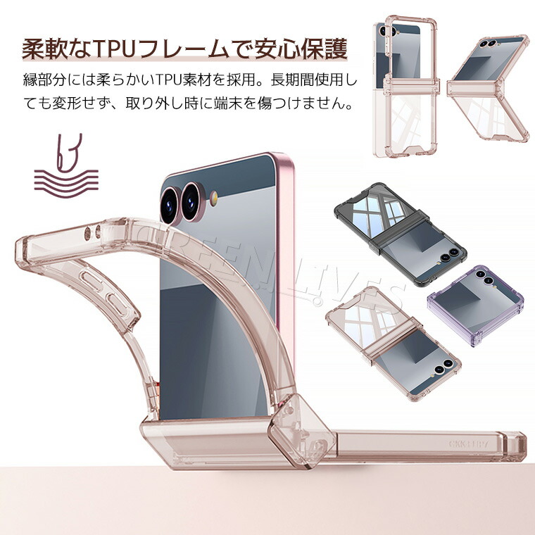 Samsung Galaxy Z Fl スマートフォン 携帯電話用アクセサリー ケース カバー 特集 グリーン ブルー ブラック ピンク パープル クリア