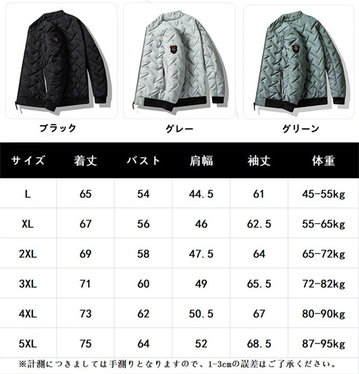 中綿ジャケット メンズ 厚手ジャケット メンズファッション 続々入荷中 グレー ブラック グリーン L XL 2XL 3XL 4XL 5XL