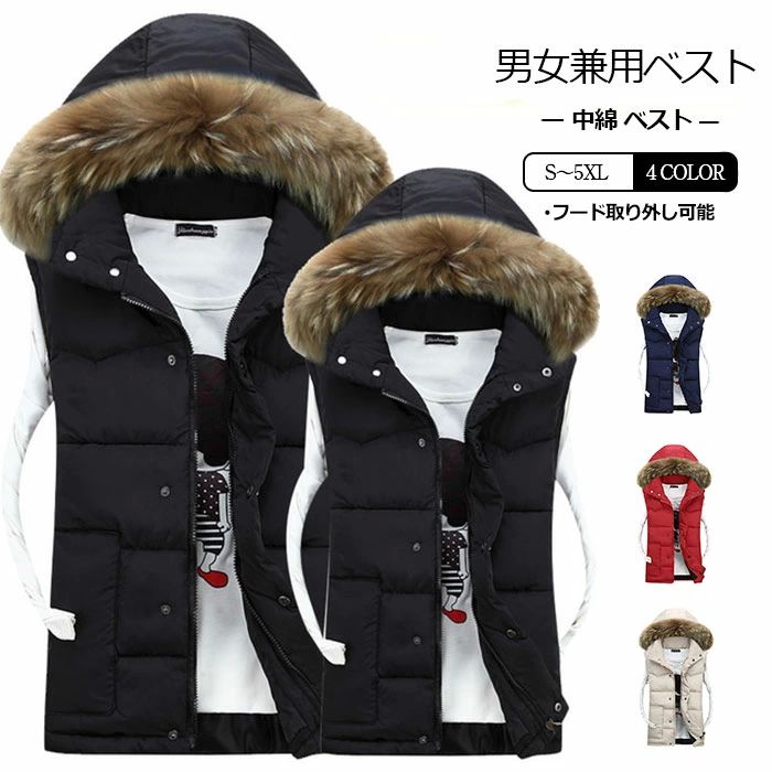ダウンベスト メンズ 中綿ベスト フー トップス ベスト ジレ 豊富 ブラック レッド ネイビー ベージュ S M L XL 2XL 3XL 4XL 5XL
