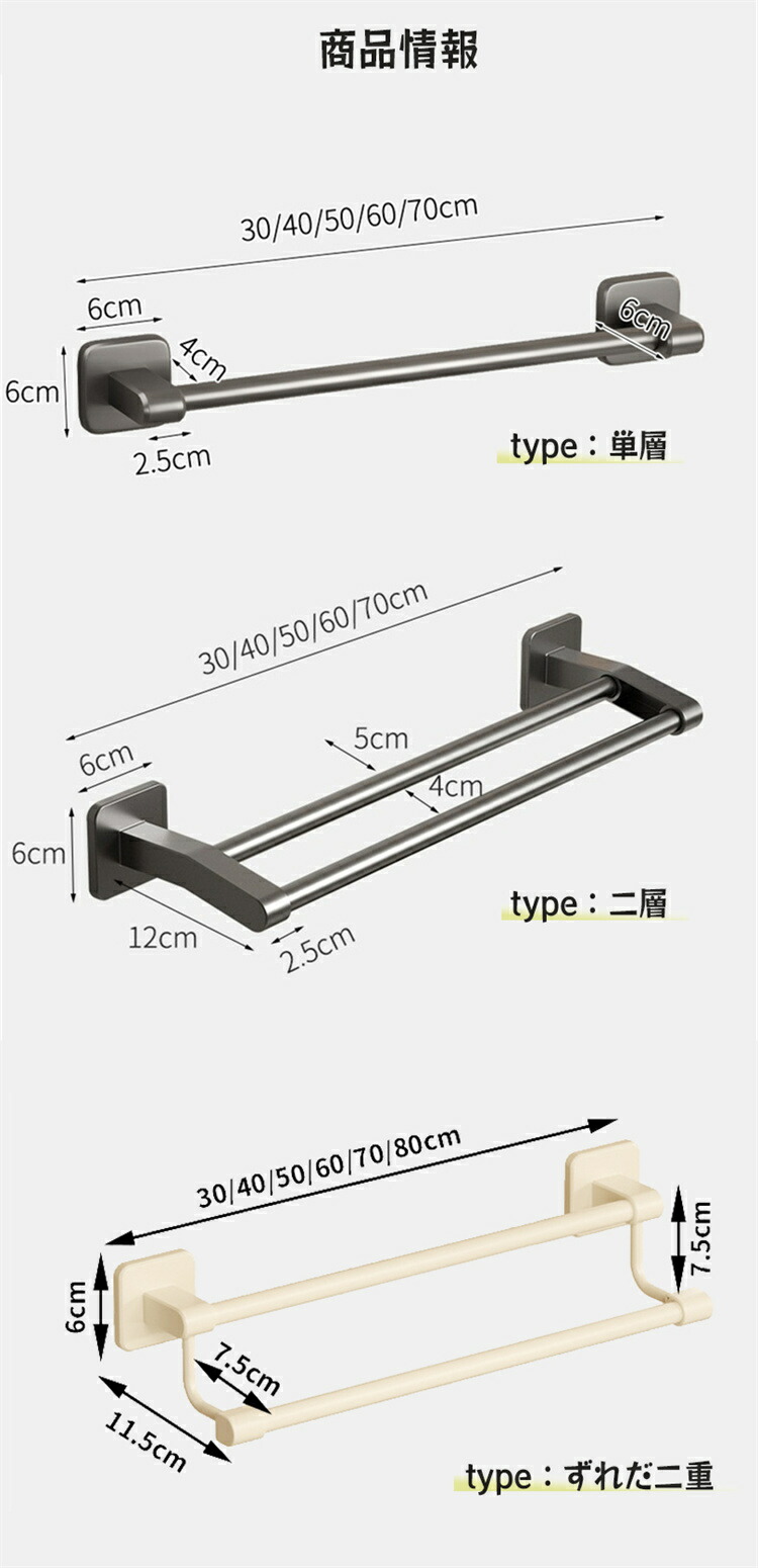 タオルハンガー 1層 2層 30 40 キッチン整理用品 タオルハンガー 豊富な品揃え 単層 二層 ずれだ二重 30cm 40cm 50cm 60cm 70cm 80cm