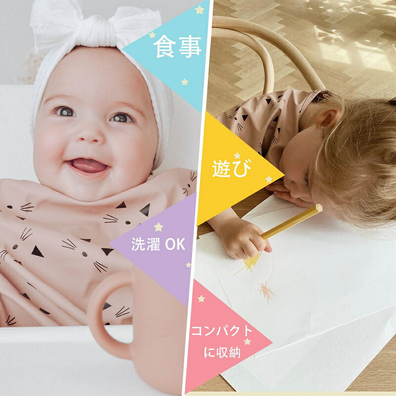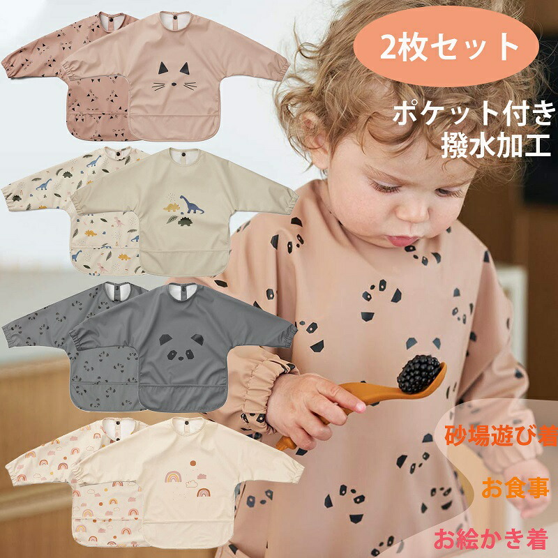 お食事エプロン 2枚セット ベビー ビ ネコ 恐竜 パンダ 虹 S(出荷元:Amazon) M(出荷元:Amazon)