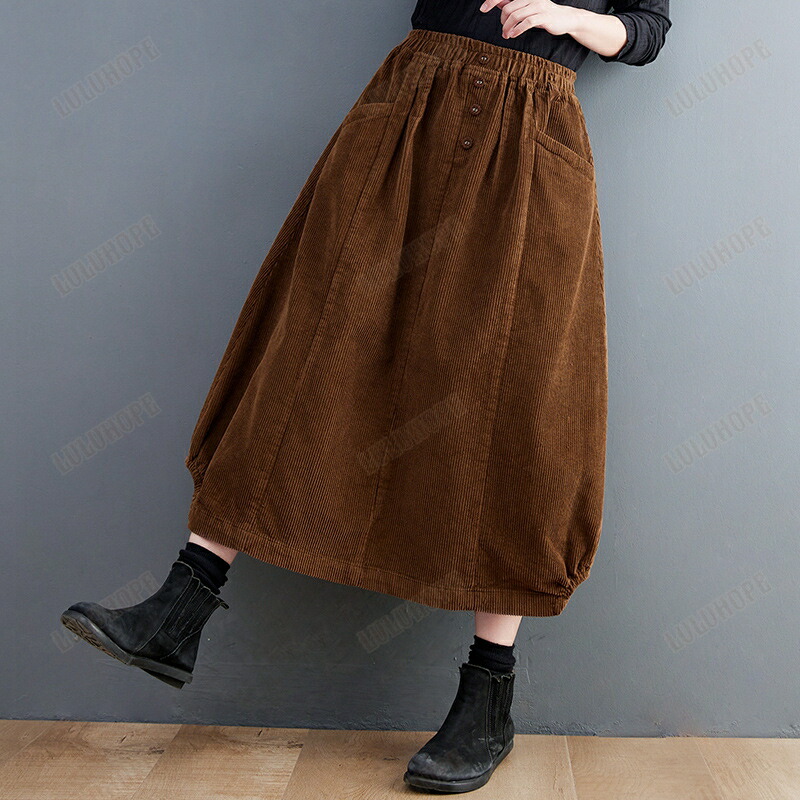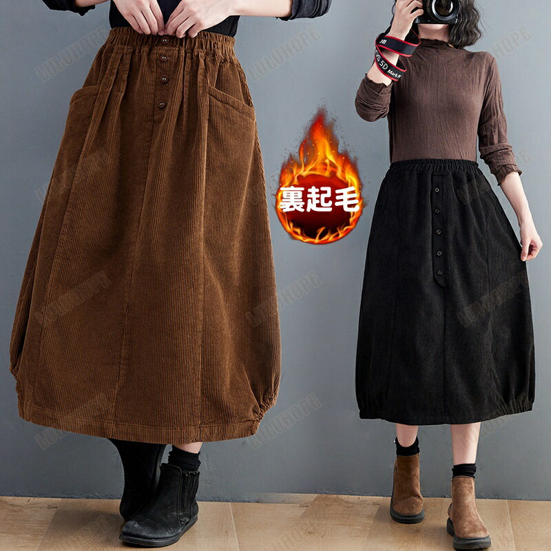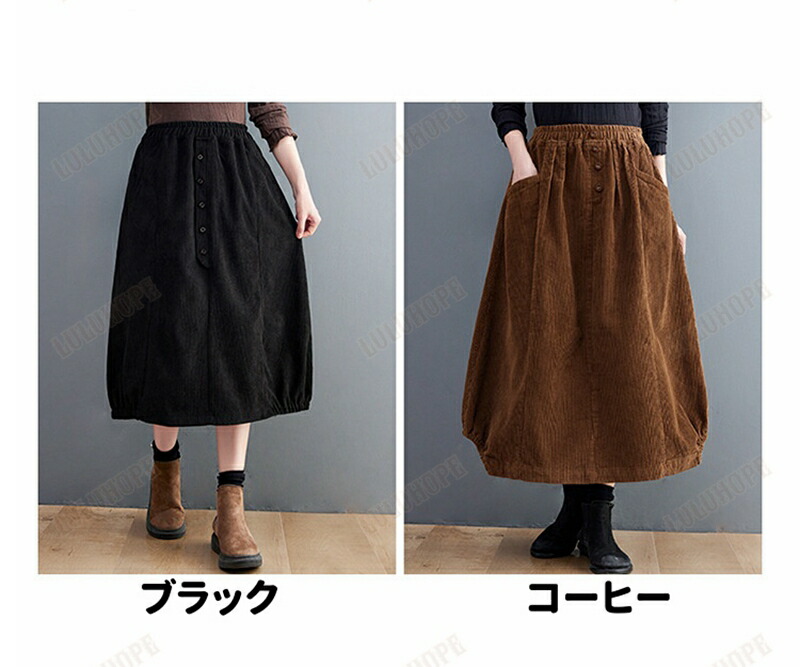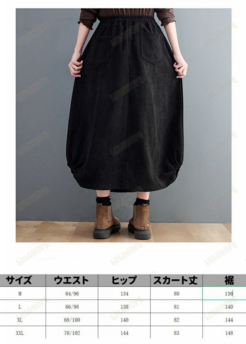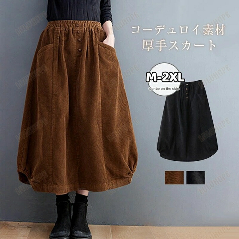 コーデュロイスカート ロングスカート レディースファッション 人気 コーヒー色 黒 M L XL 2XL