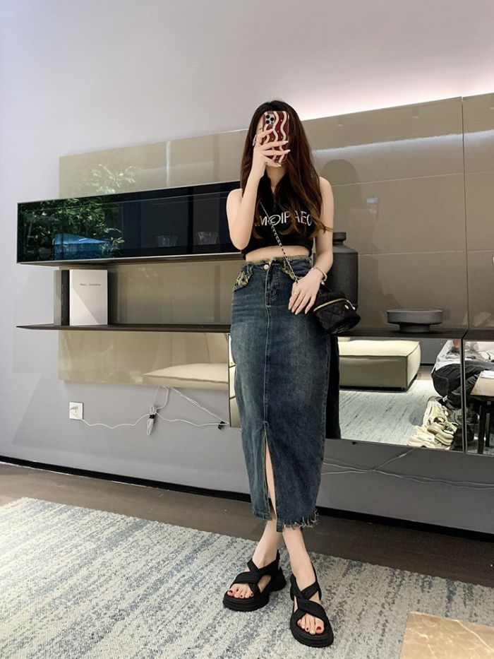 デニムパンツ ビジュー付き