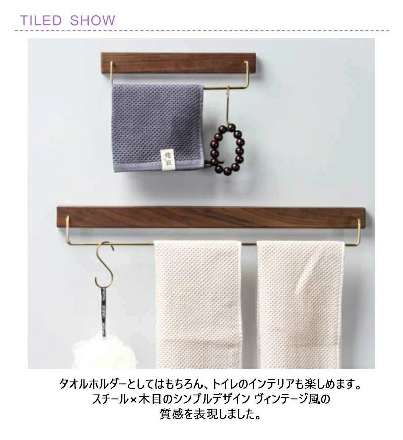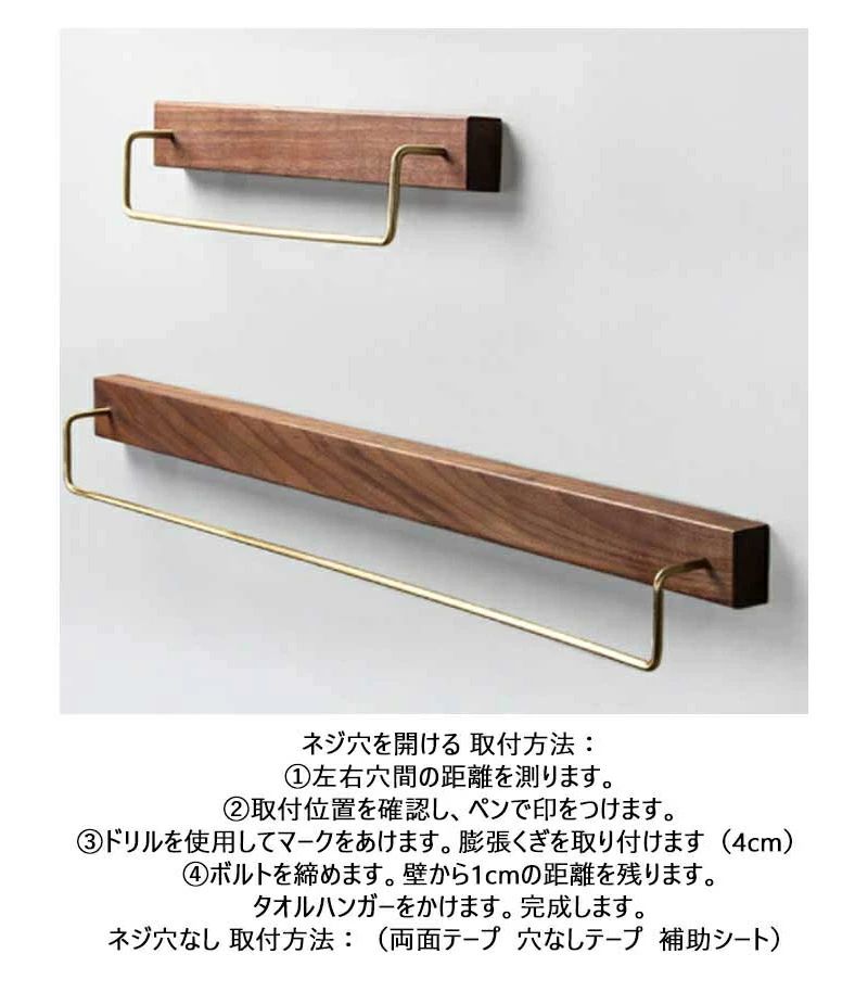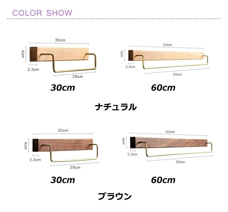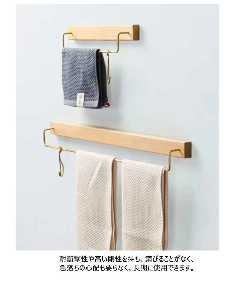 タオルハンガー 木製 真鍮 タオル掛け キッチン用品 食器 調理器具 豊富 ナチュラル ブラウン 30cm 60cm