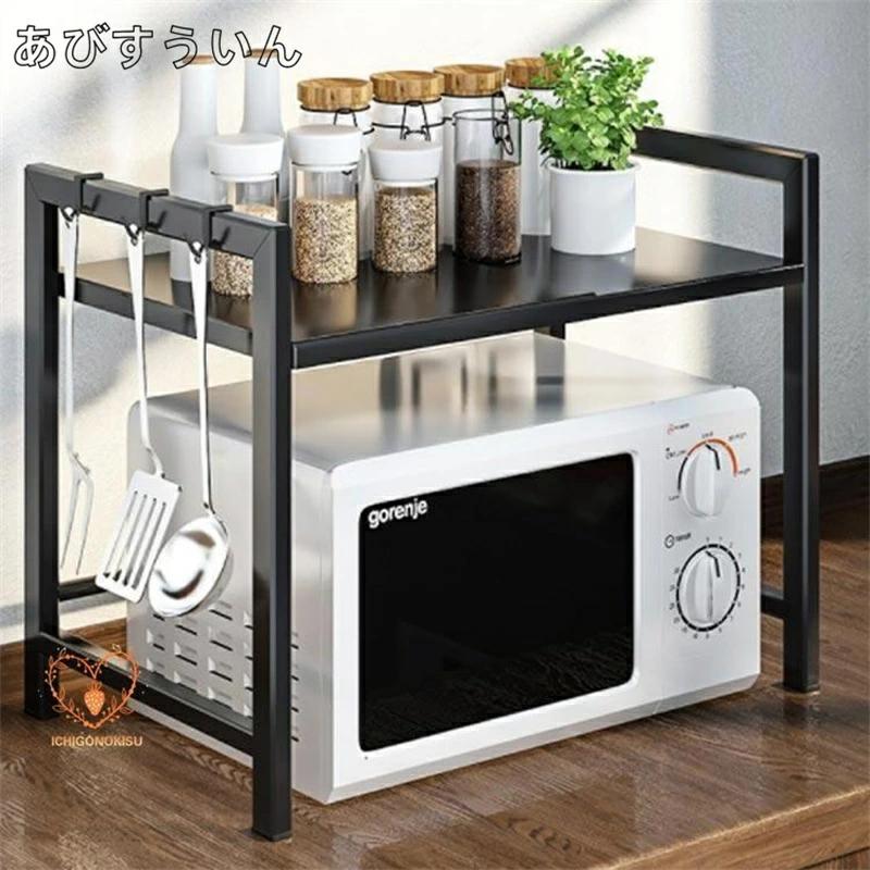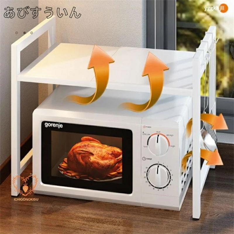 レンジ上ラック 1段 2段高さ調整 キッチンラック 棚 レンジラック カウンター上 収納棚 レンジ台 トースターラック カウンター上収納 ラック