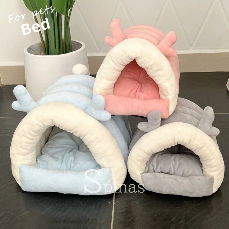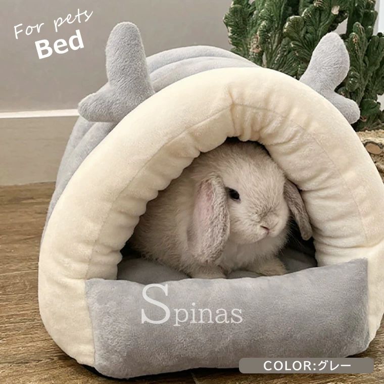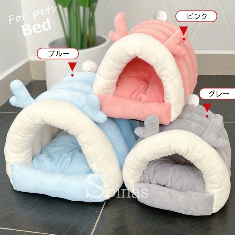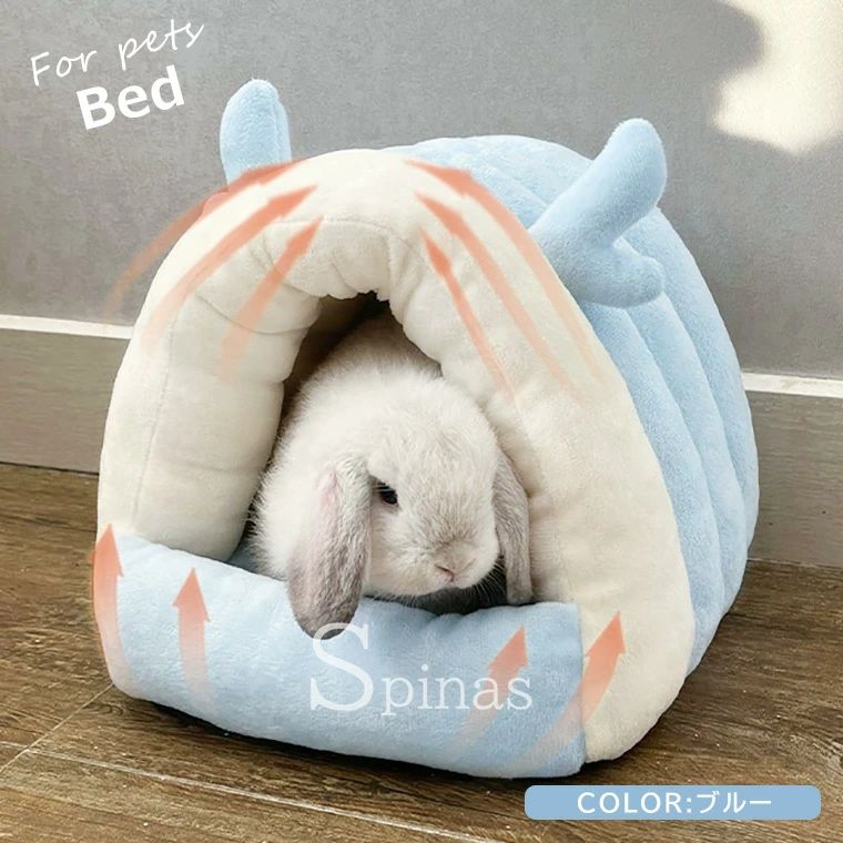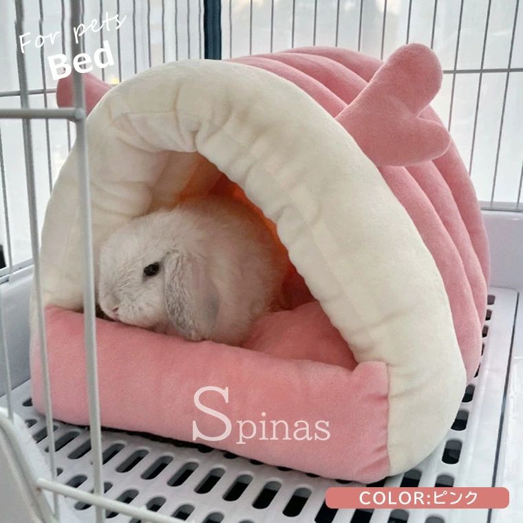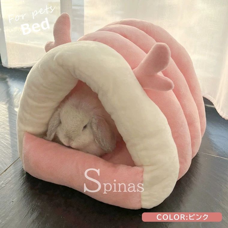 暖か快適なペット用ドームベッド ウサギ ピンク ブルー グレー S M