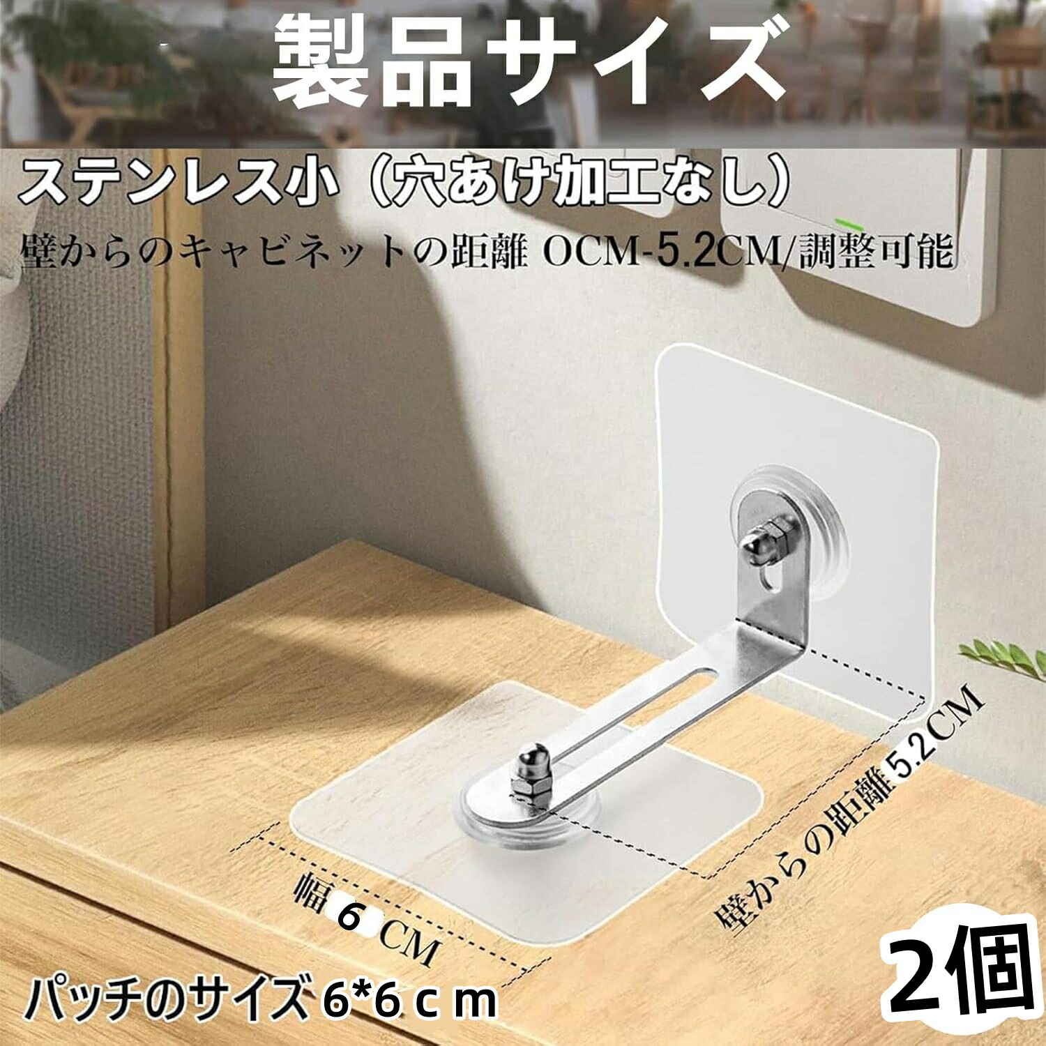 【距離が調整可能】家具転倒防止グッズセットは2個入りです。サイズが6CM*6CMで、壁面からの最大距離が5.2CM、調整可能な距離が0~52mmとなっています。壁面からの距離を必要に応じて調整することにより、家具の安全性、安定性、地震 転倒防止を効果的に向上させることができます。※複数設置で耐震強化!天面でも側面でも設置することができます。家具の大きさに合わせて複数設置することで耐震を強化することができます。