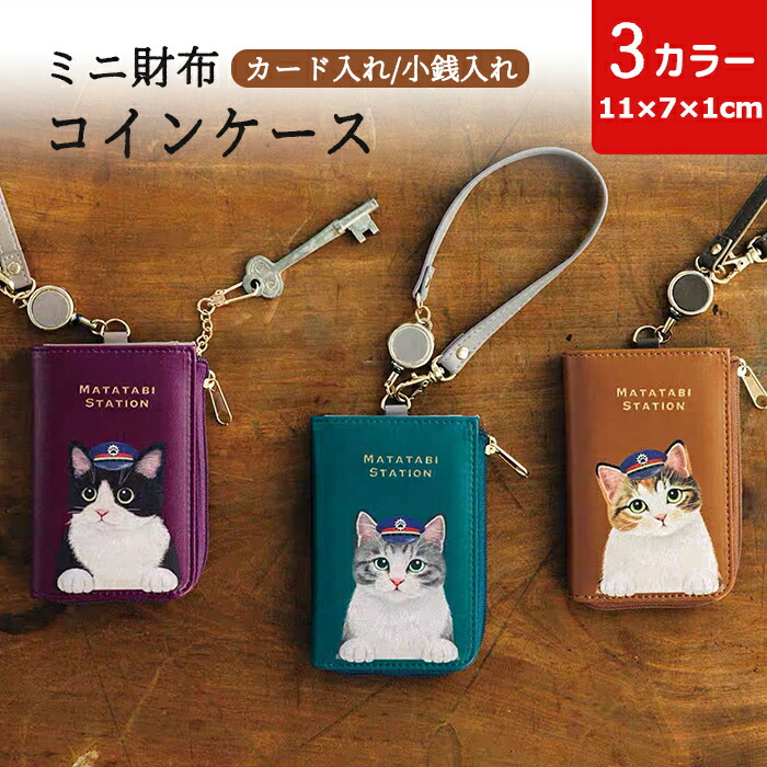 コインケース かわいい 猫 ねこ 可愛い 猫柄 ミニ財布 小銭入れ ポーチ ミニウォレット ミニポーチ バッグチャーム キーケース キーリング付き レザー 猫グッズ ネコ 小物収納 コンパクト ペット