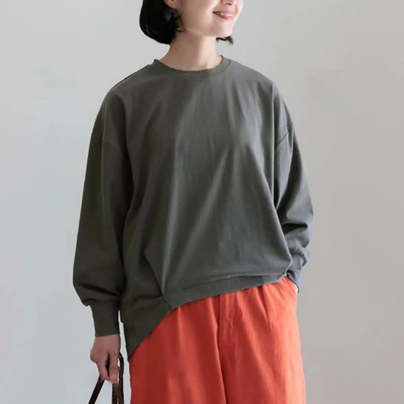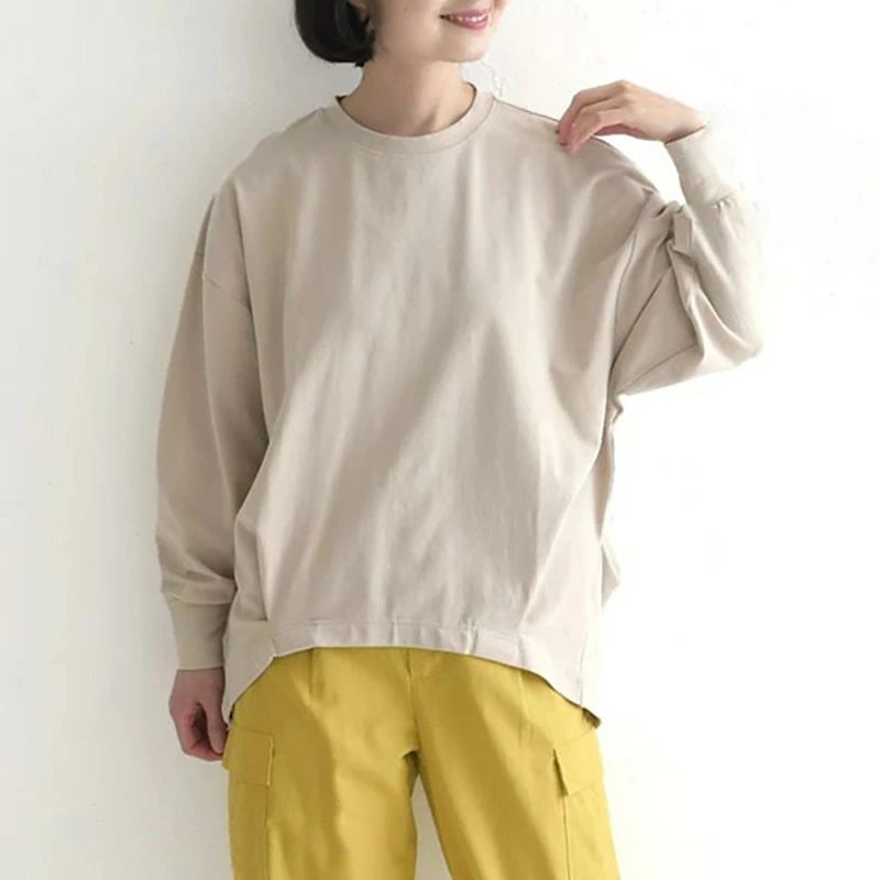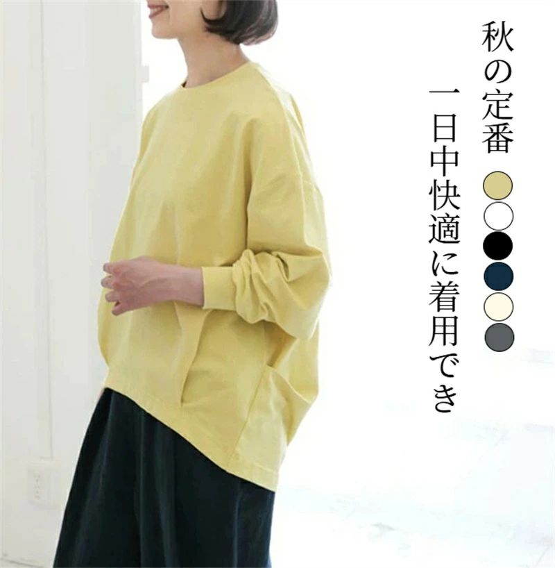 ゆったり きれいめ デイリー ふんわり トップス Tシャツ カットソー 人気 ホワイト ブラック イエロー アプリコット ネイビー ダークグレー M L