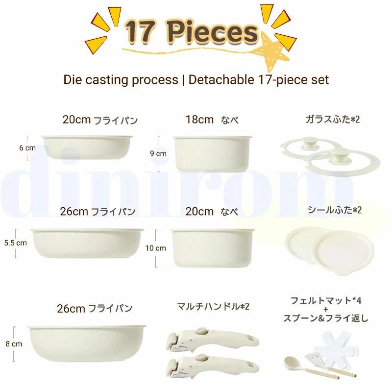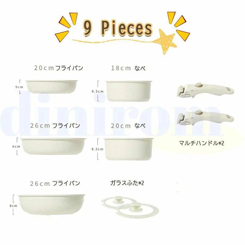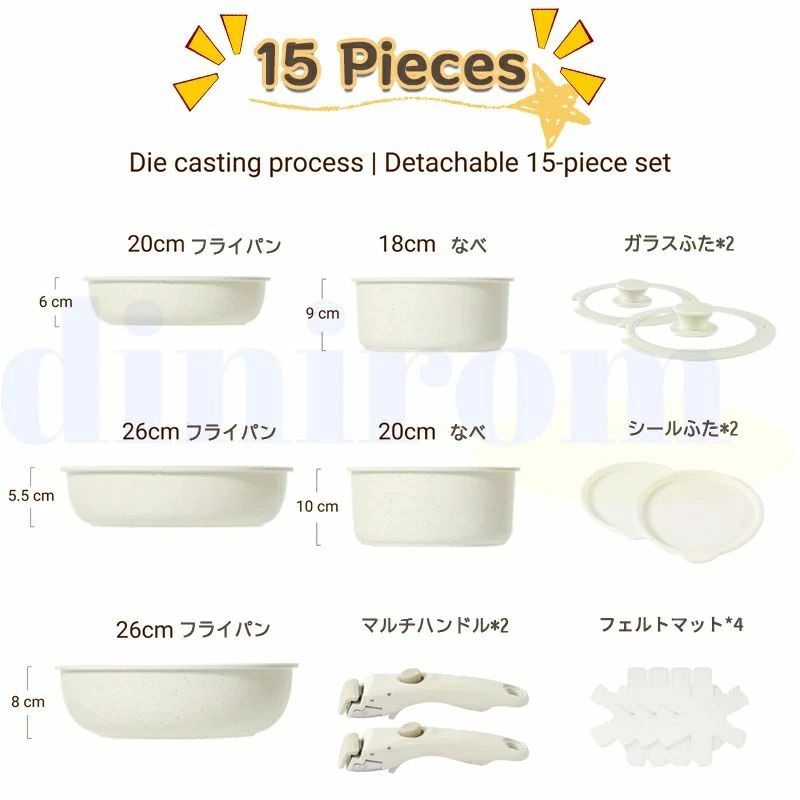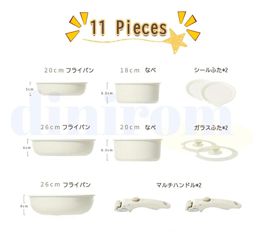 フライパン セット IH 取っ手が取れ 4点 5点 9点 11点 12点 15点 17点 専用取っ手のみ(ベージュ)