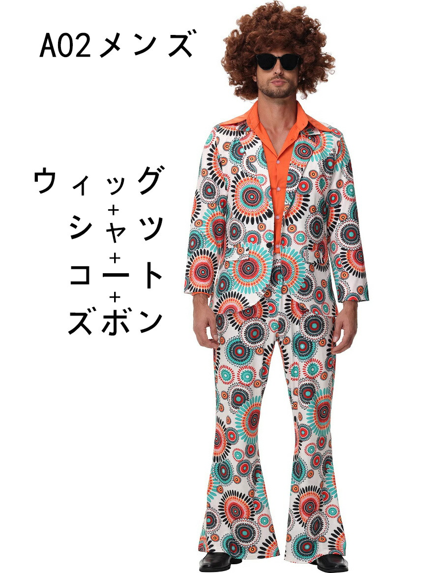 70s ファッション ディスコ コスプ キッズ ベビー マタニティ 新作 ヘッドスカーフ+トップス+ズボン シャツ+ズボン+ コート ウィッグ+シャツ+ズボン+ コート M L XL