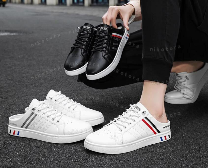 スニーカーサンダル PUレザー サボ メンズ靴 スニーカー 早い者勝ち 黒色 白灰色 白赤色 39\u003d24.5cm 40\u003d25.0cm 41\u003d25.5cm 42\u003d26.0cm 43\u003d26.5cm 44\u003d27.0cm
