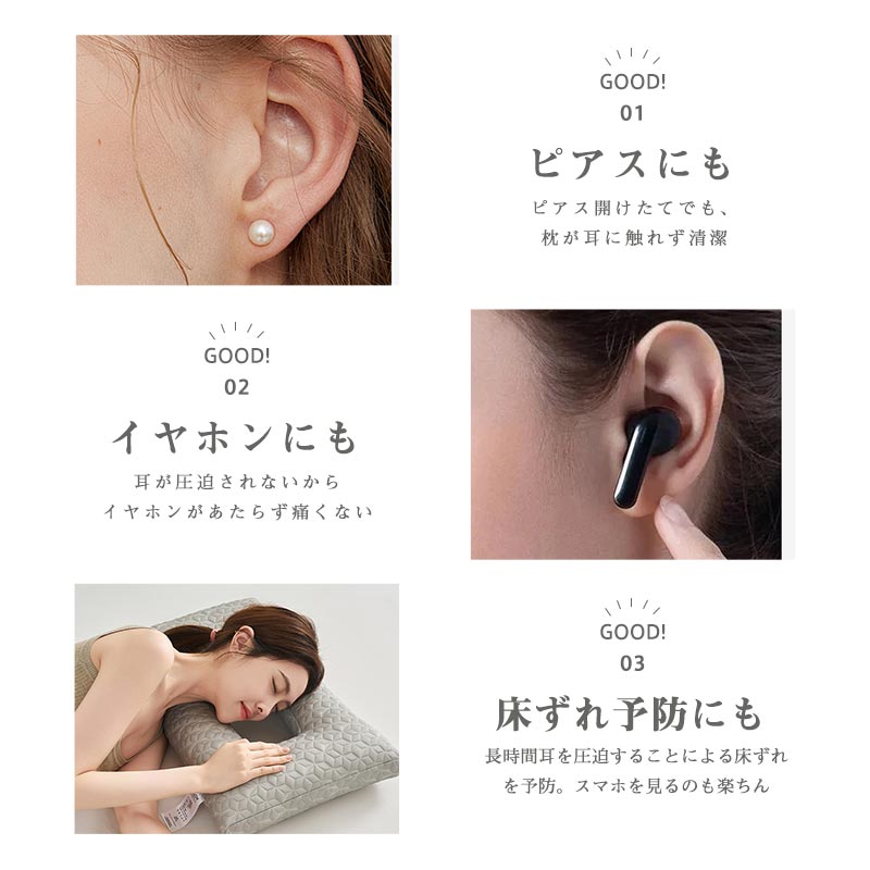 耳 穴 まくら 横向き寝枕 耳まくら インテリア 寝具 収納 特集 ホワイト ホワイトグレー グレー 1個 2個