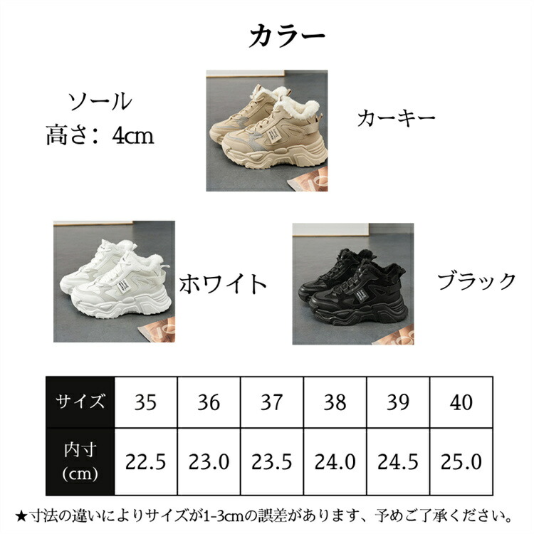 ダッドスニーカー 防寒 ボアスニーカー 靴 早い者勝ち 35/22.5 36/23.0 37/23.5 38/24.0 39/24.5 40/25.0 ホワイト ブラック カーキー