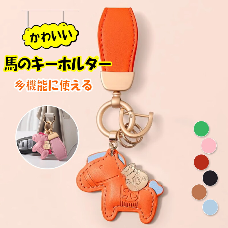 キーホルダー かわいい馬のキーホルダー 財布 ケース キーホルダー キーケース 特集 オレンジ ピンク グリーン レッド ブルー ブラック ブラウン 馬蹄ボタン付きタイプ 馬蹄ボタン無しタイプ