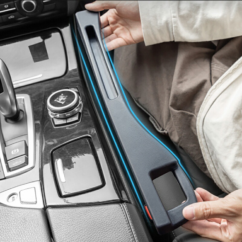 運転席或いは助手席とセンターコンソールとの間にある隙間スペースを埋めることでスマホや財布、小銭、鍵、ライターなど小物が座席下へと落下するのを防げる。