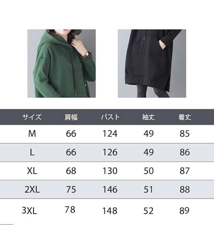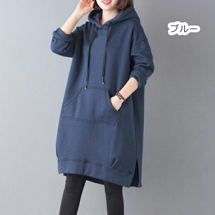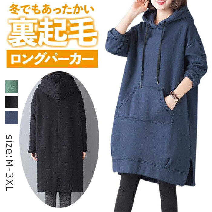 パーカー ロング 裏起毛 レディース トップス パーカー 続々入荷中 ブラック グリーン ブルー M L XL 2XL 3XL