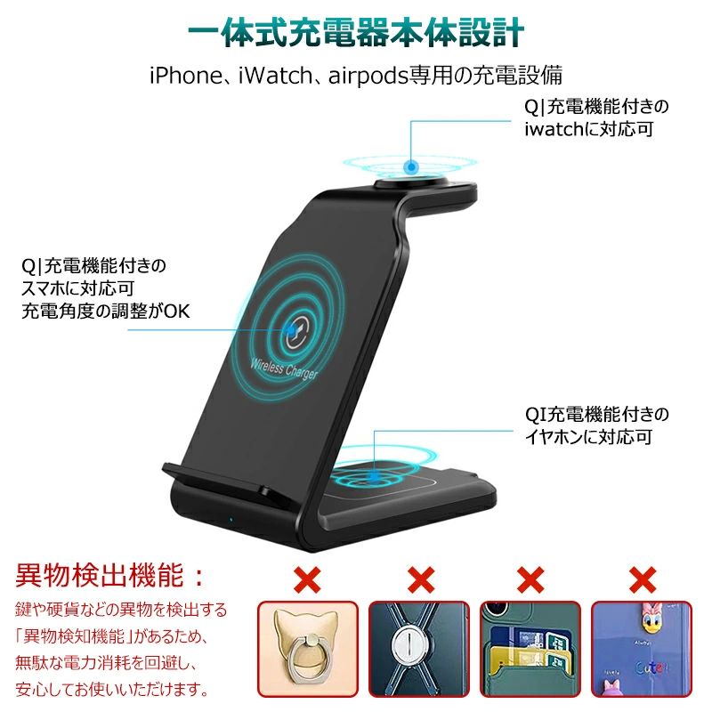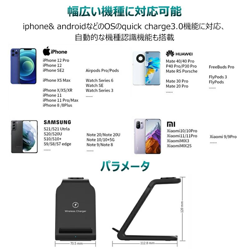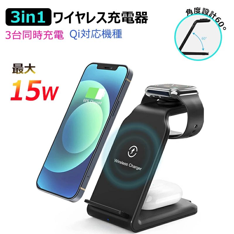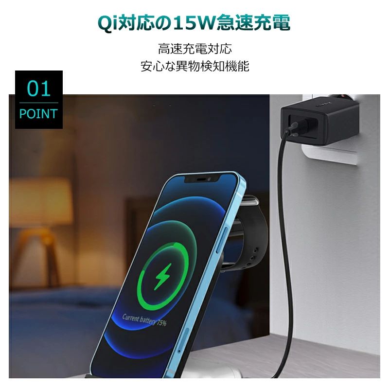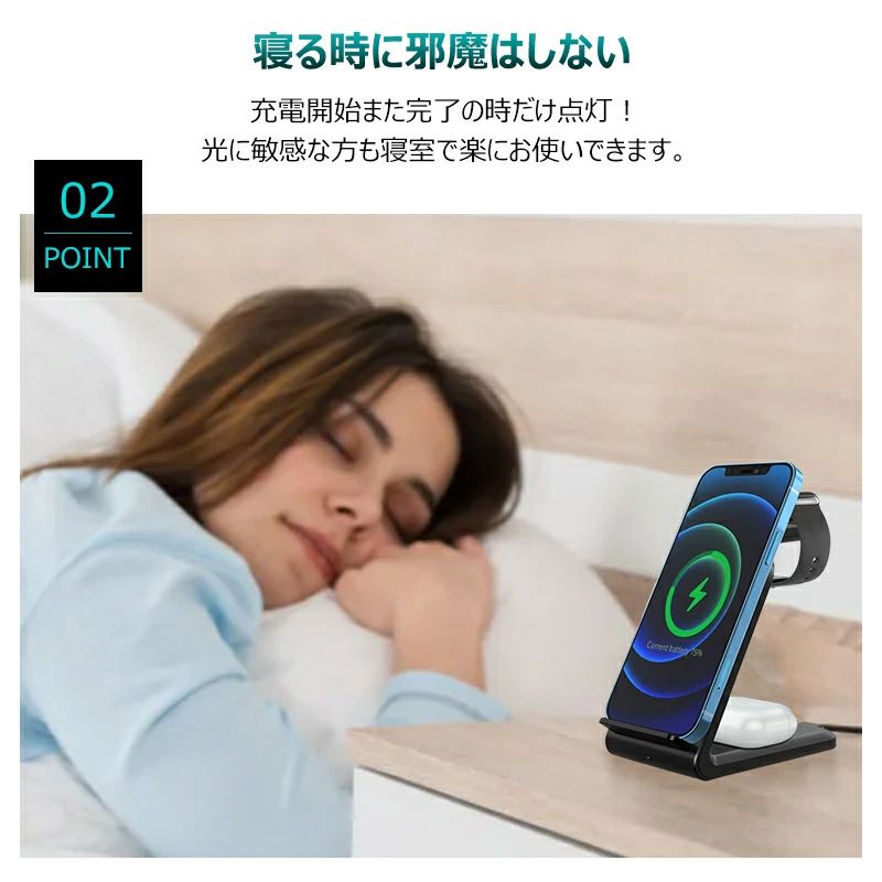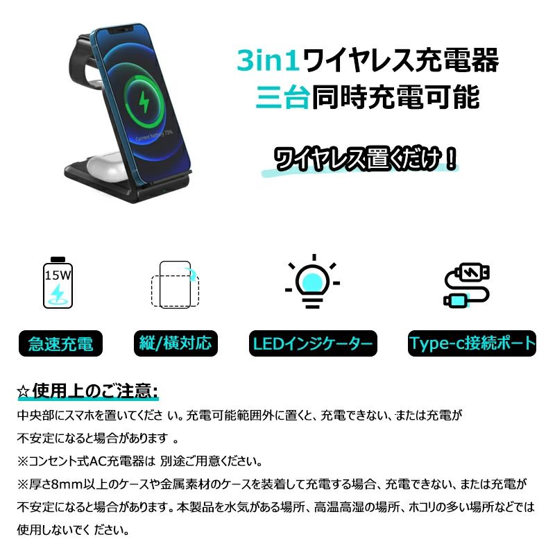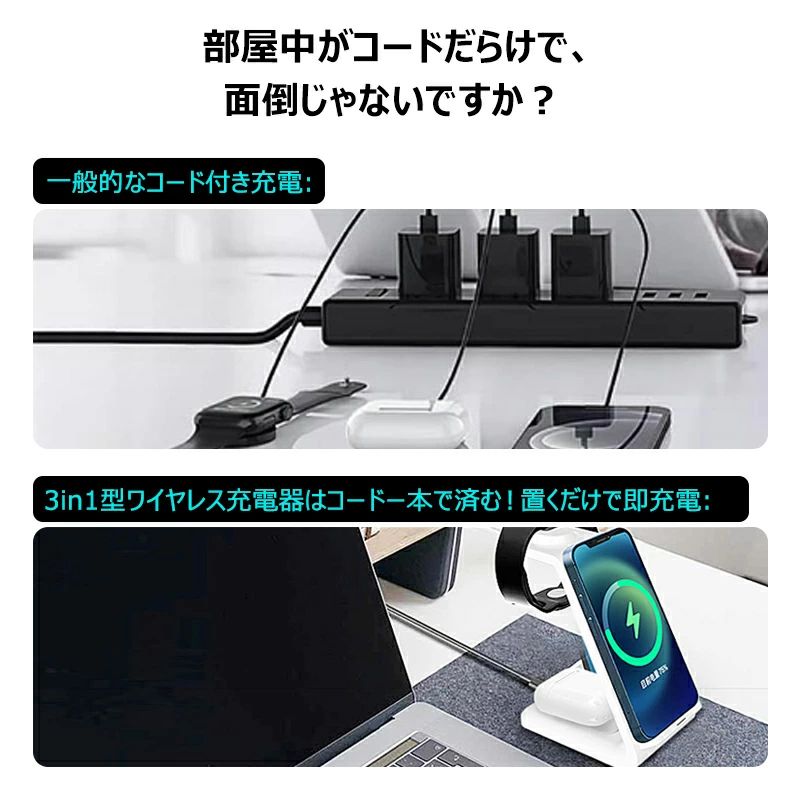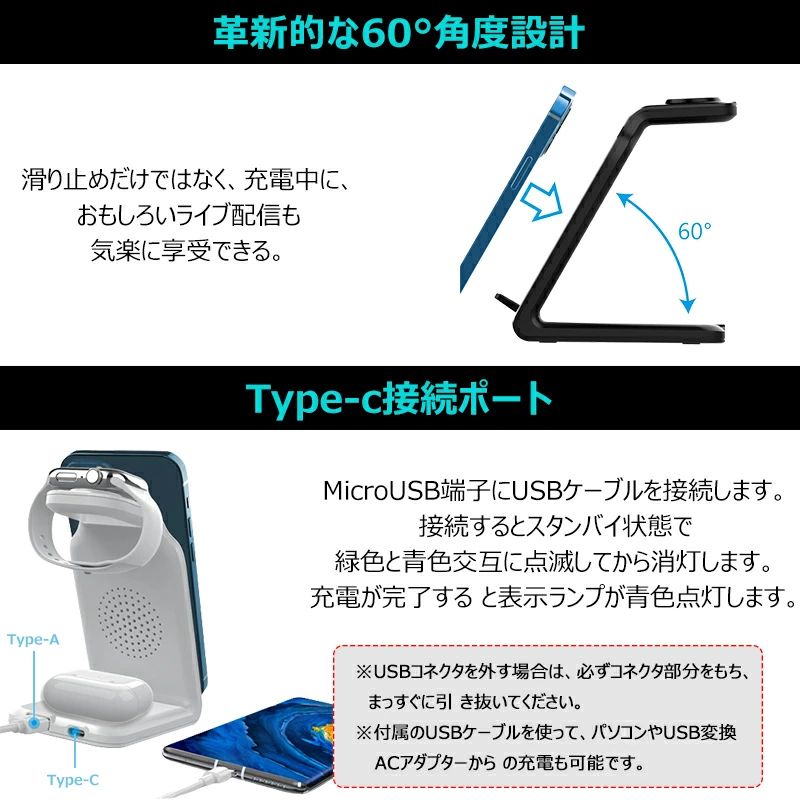 ワイヤレス充電器 3in1 充電ドック ブラック ホワイト