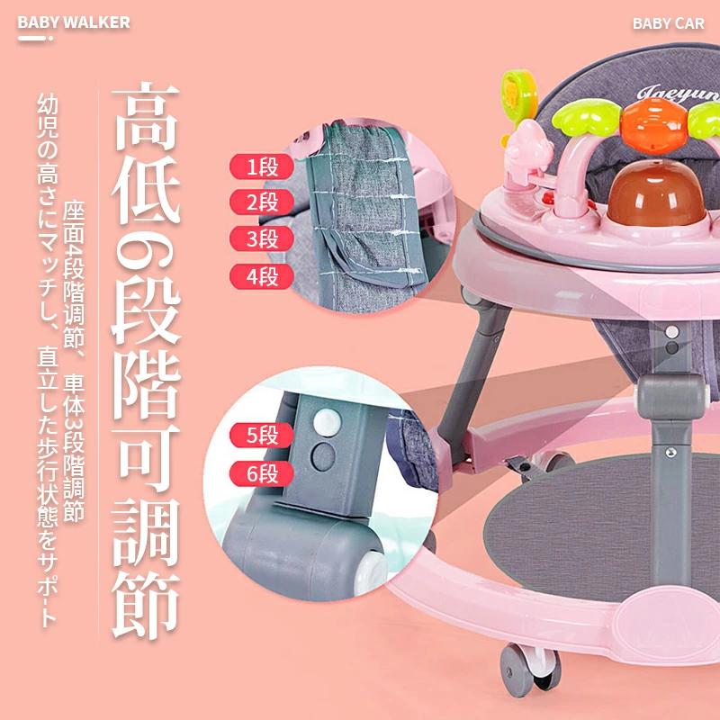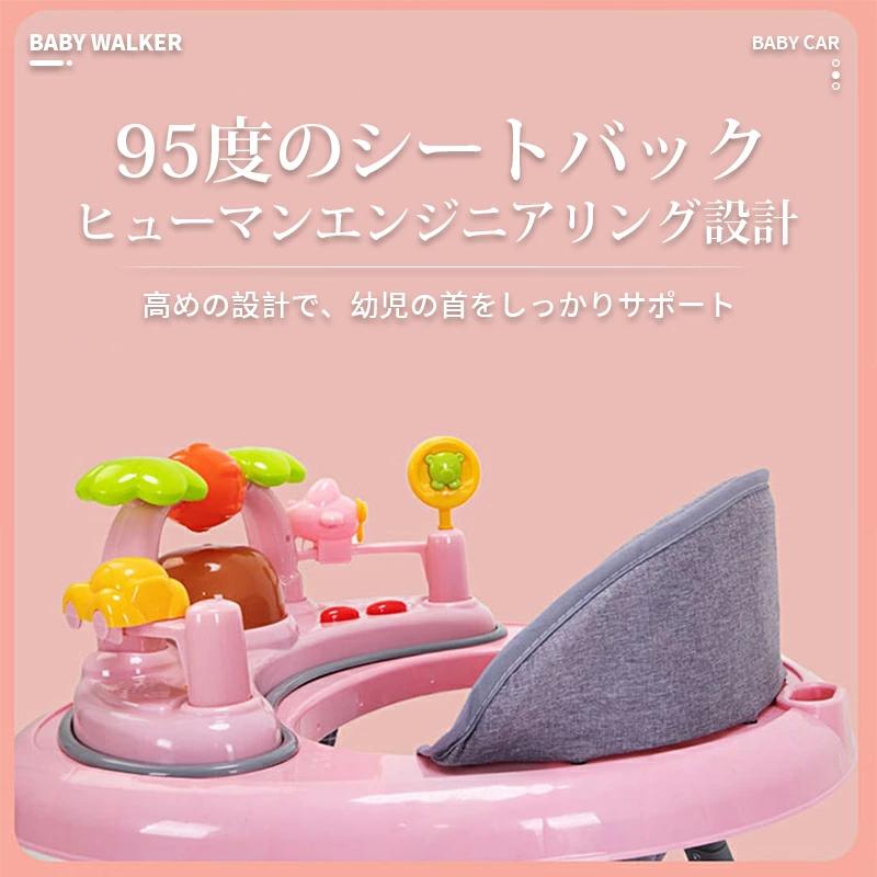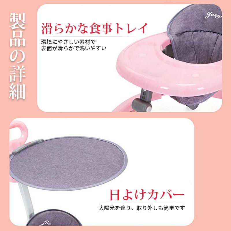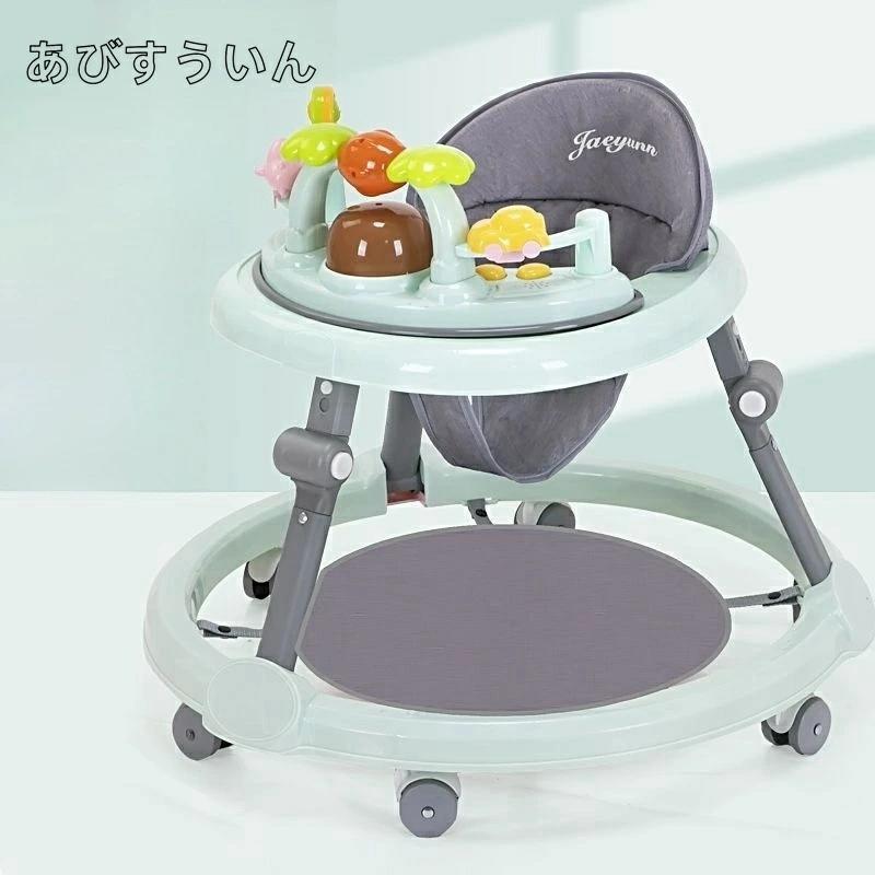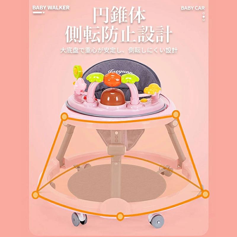 赤ちゃん ベビー 室内 室外 高さ調整 ベビーウォーカー スタンダード 丸型 歩く練習 折り畳み式 テーブル付き 円形 車 静音