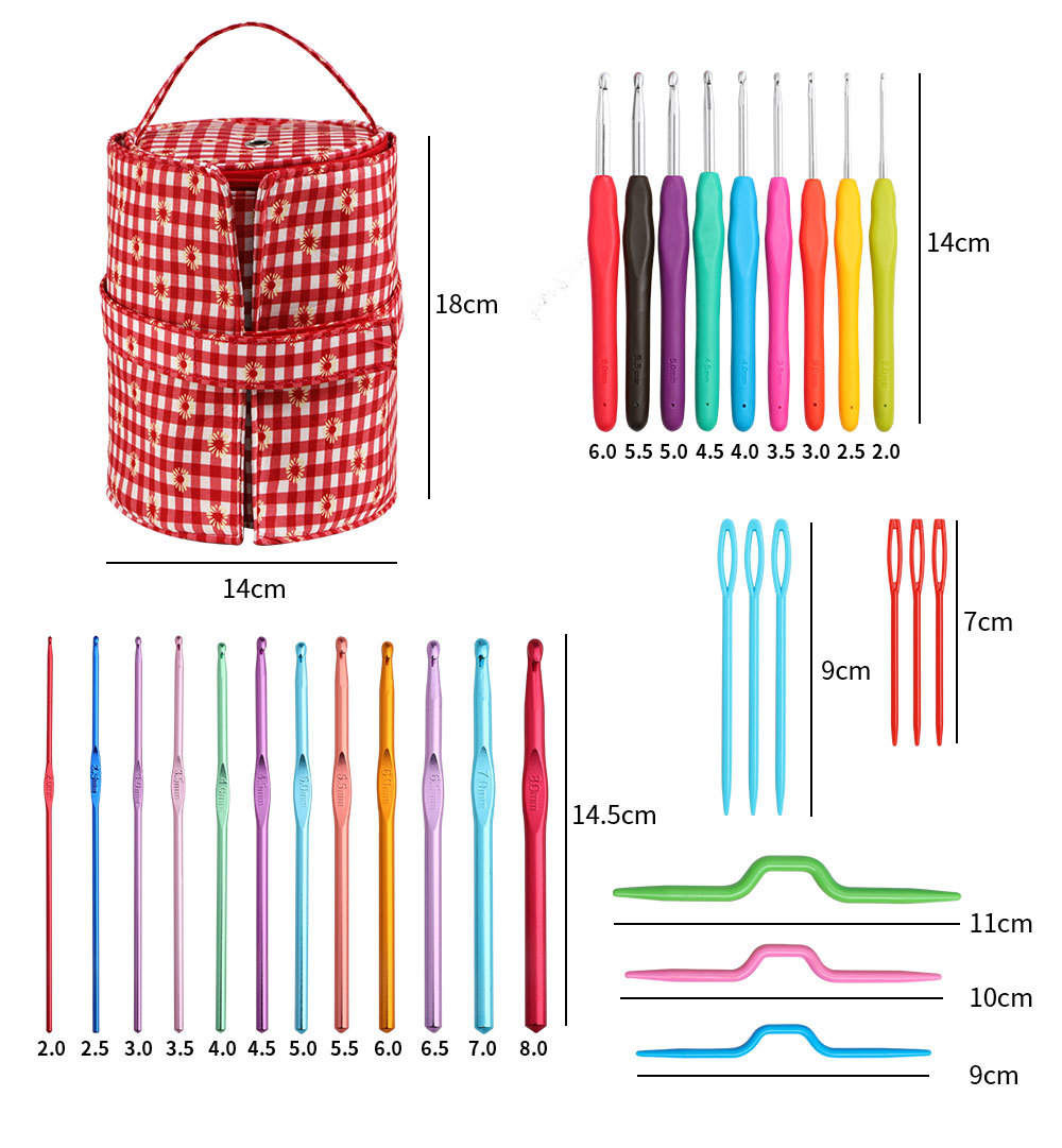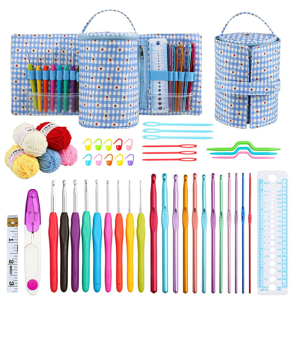 "かぎ針 編み針 21本レース針49点 手芸 クラフト 生地 道具 キット 編物道具 編針 通販 レッド ブラック グレー ブルー