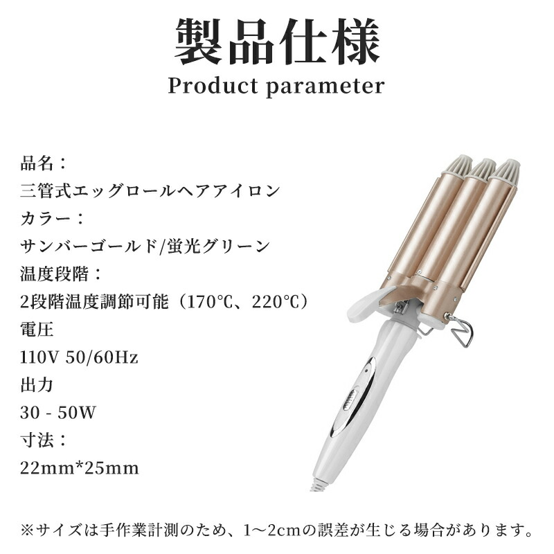 ヘアアイロン カール 初心者向け カー 22mm 25mm ゴールド グリーン