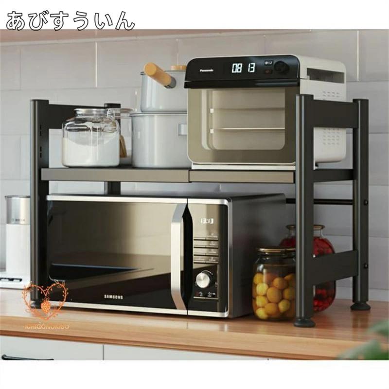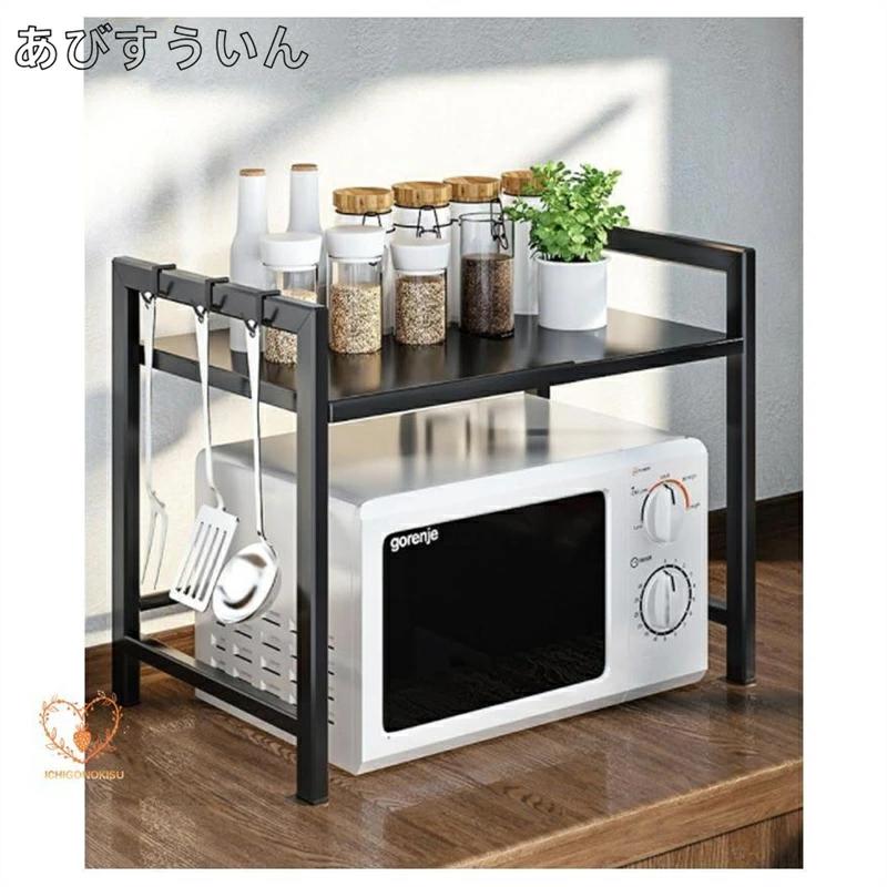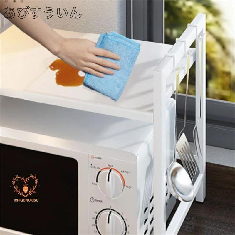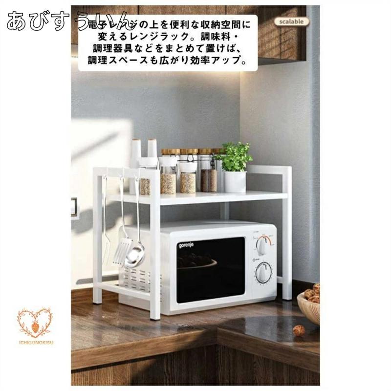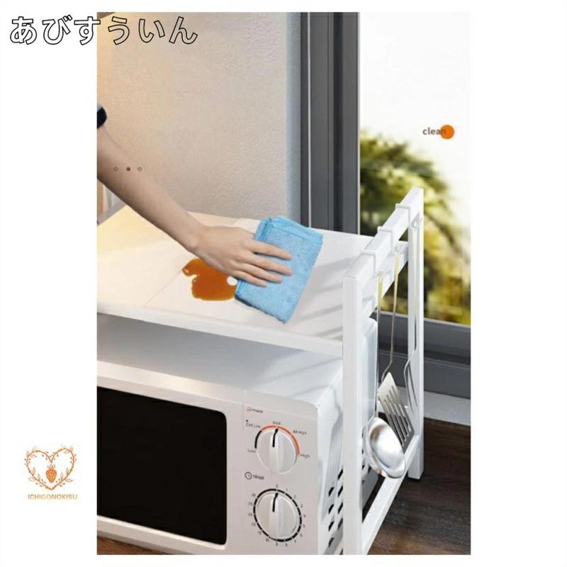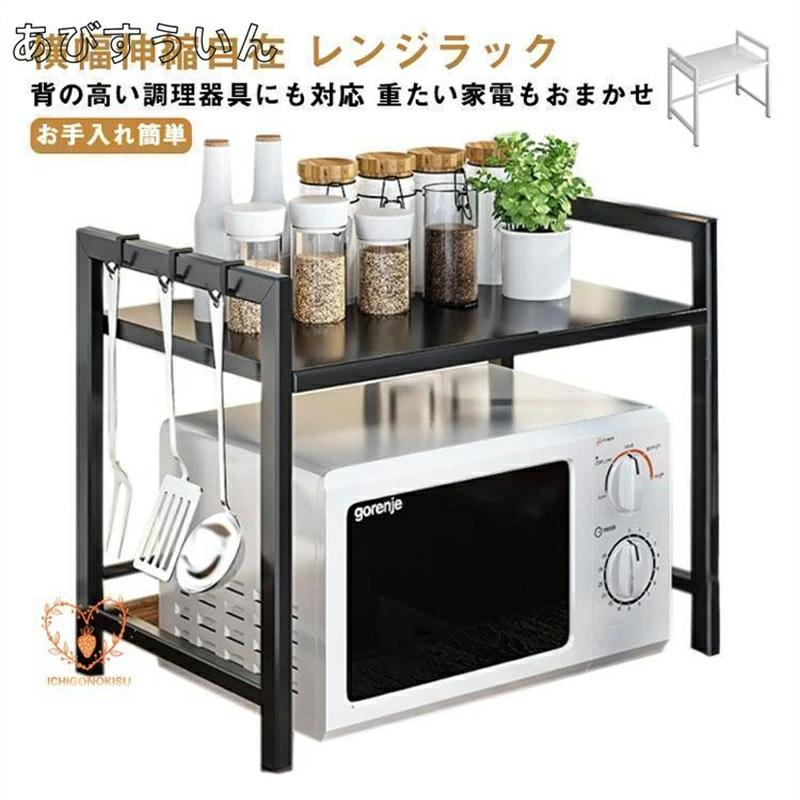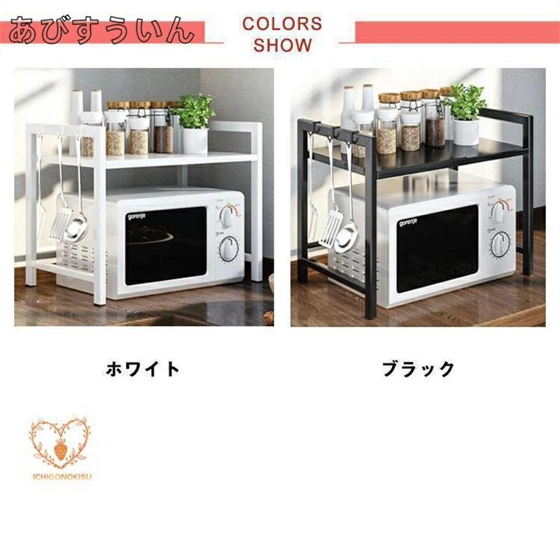 レンジ上ラック 1段 2段高さ調整 キ キッチン用品 食器 調理器具 続々入荷中 ホワイト ブラック 1段フック6個付 2段フック6個付