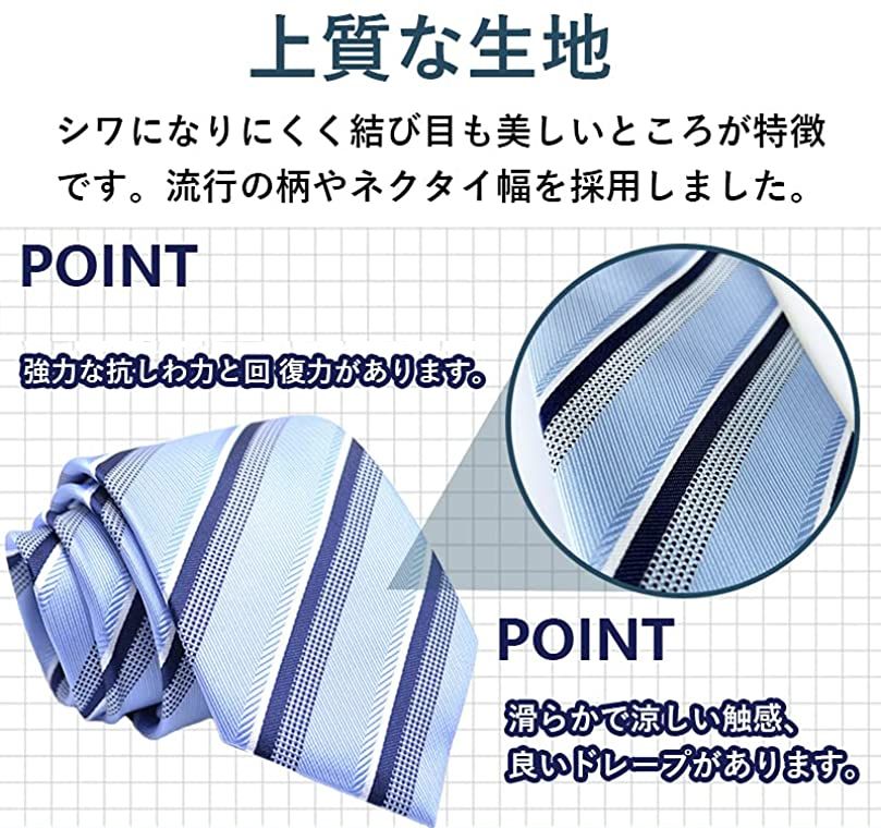 ネクタイ*1本 | ネクタイピン*1本 | カフスボタン*2枚 | ハンカチ*1枚 | ボックス*1個