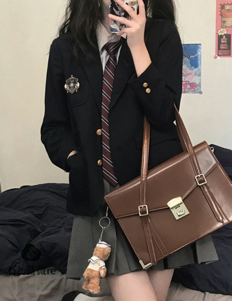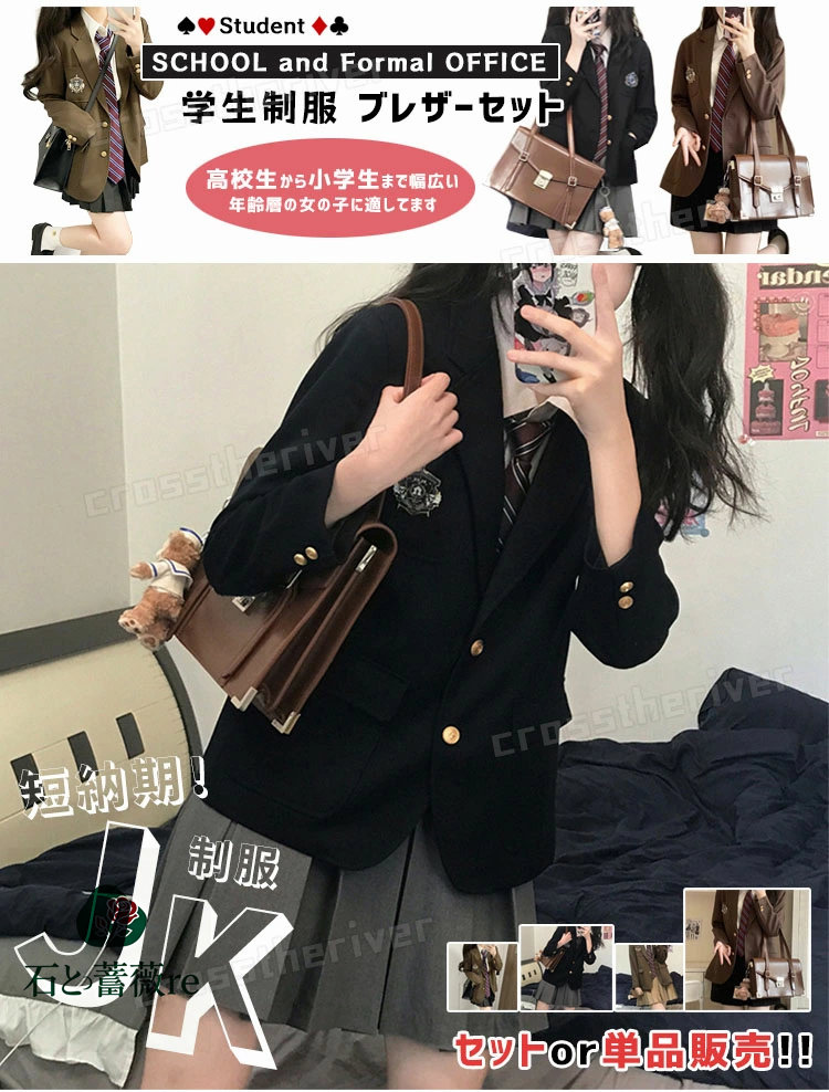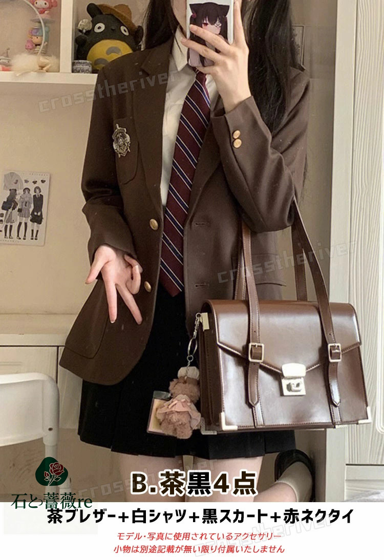 卒業式 スーツ 女の子 なんちゃって制 キッズ ベビー マタニティ 豊富な品揃え 黒ブレザー 茶ブレザー A.茶色4点 B.茶黒4点 C.黒灰4点 D.黒紺4点 XS S M L XL 2XL