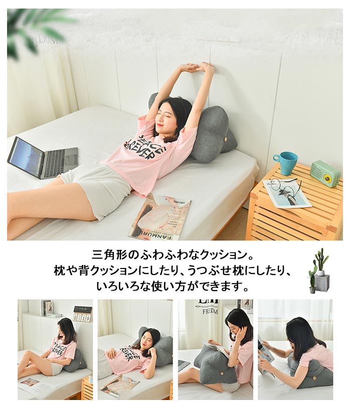 うつぶせ クッション 三角形 うつぶせ グリーン 薄いピンク ダークグレー グレー ブラウン ブルー ピンク ベージュ