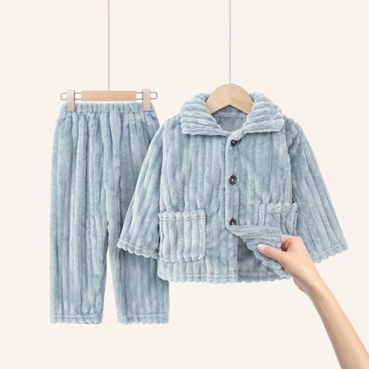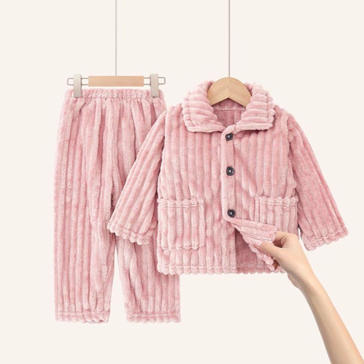 着る 前開き 襟付き 長袖 セットアップ ルームウェア あったか 保温 防寒 もこもこ ふわふわ 厚手 キッズ 冬用 パジャマ 子ども
